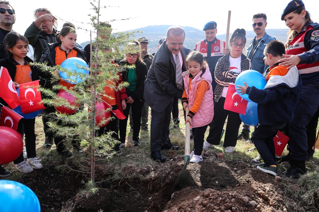 Tokat Şehitliği’nde devam eden programda Tokat Valisi Numan Hatipoğlu, şehit yakınları, gaziler ve yakınları, protokol mensupları ile öğrenciler 100 fidanı toprakla buluşturdu.