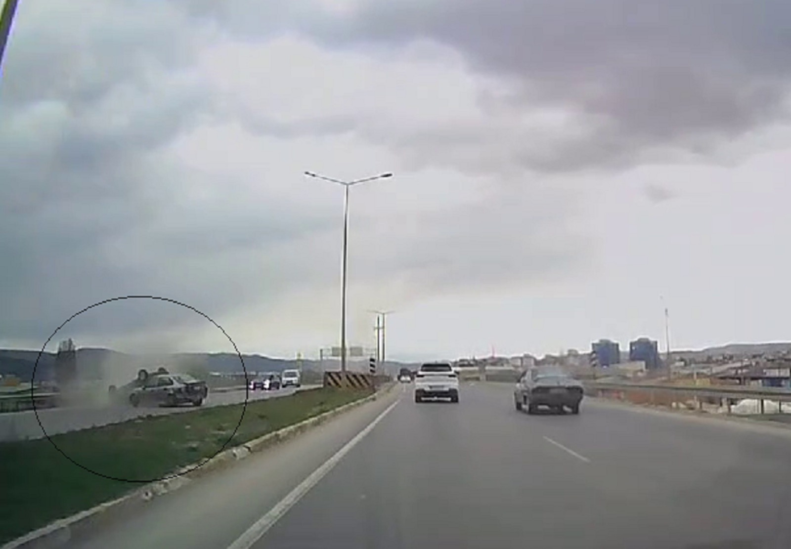 Edinilen bilgilere göre kaza geçtiğimiz günlerde Sivas-Erzincan kara yolu otogar üst kavşakta meydana geldi. S.T. idaresindeki 58 TN 192 plakalı Ford marka otomobil, aynı yönde seyreden R.K. idaresindeki 58 AY 556 plakalı Opel marka otomobile arkadan çarptı. Kazada sürücü S.T. ile Ş.K. ve Ş.B.Y. yaralandı. Yaralılar olay yerinde yapılan ilk müdahalenin ardından ambulanslarla hastaneye kaldırıldı. Kaza anının görüntüleri ortaya çıktı. Karşı yönden gelen bir aracın araç içi güvenlik kamerasına yansıyan görüntülerde, 58 TN 192 plakalı otomobilin sürücüsünün direksiyon hakimiyetini kaybetmesi sonucu aynı yönde giden 58 AY 556 plakalı otomobile arkadan çarptığı ve ters döndüğü görüldü.