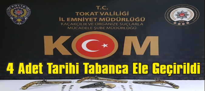 Edinilen bilgiye göre, Tokat Emniyet Müdürlüğüne bağlı Kaçakçılık ve Organize Suçlarla Mücadele Şube Müdürlüğü ekipleri Niksarda bir şüphelinin 2863 Sayılı Kültür ve Tabiat Varlıklarını Koruma Kanununa Muhalefet suçu işlendiği istihbaratına ulaştı. Derhal harekete geçen ekipler yapılan çalışma sonrasında tarihi eser olduğu değerlendirilen;4 adet tabanca, 16 adet sikke ve 1 adet bileklik ele geçirdi. Ele geçirilen eserlere el konulurken şüpheli S.Ö. hakkında adli işlem yapıldığı öğrenildi.