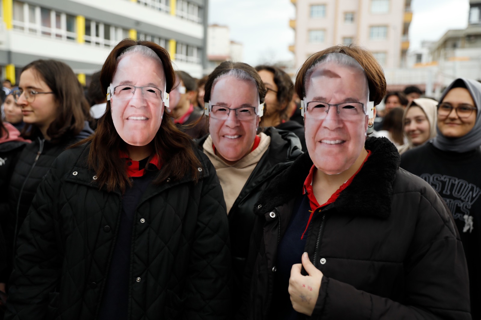 Öğrenciler, öğretmenleri Sağır'ın fotoğrafının olduğu maskeleri takarak törene katıldı. Bahçeye, "İlyas Hocam sizi unutmayacağız" yazılı pankart asıldı. Bazı öğrencilerin ise gözyaşlarını tutamadığı görüldü.