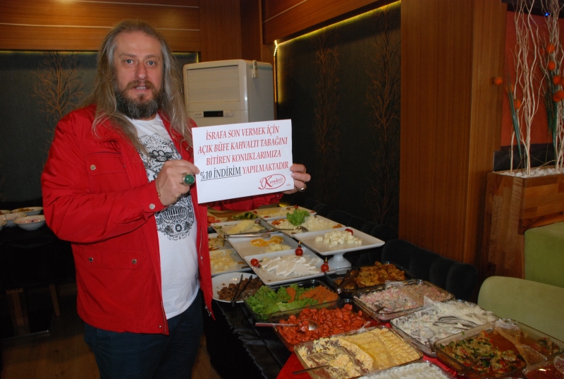 Türkiye'de açık büfe yiyeceklerin 3'te 2'si israf edilerek çöpe giderken, Tokat'ta bir işletmeci tarafından israfa karşı kampanya başlatıldı. İş yerine “İsrafa son vermek için açık büfe kahvaltı tabağını bitiren konuklarımıza yüzde 10 indirim yapılmaktadır” şeklinde afiş asan Ömer Aydınoğlu, kampanyadan olumlu sonuçlara alamaya başladıklarını kaydetti. İnsanların genelde açık büfede ikram edilen yiyeceklerin çoğunun tadına bakmak düşüncesi ile tabağını doldurduğunu ama çoğunun tüketemediğine ve israf edildiğine dikkat çeken Aydınoğlu, "Açık büfe ikramların yüzde 30'a yakını çöpe gidiyor, israf oluyor. Bunun önüne geçmek için yüzde 10 indirim yaptık. Çöpe giden yiyecekler Afrika'daki insanları doyurabilir mantığı ile yola çıktım. Müşterilerimiz de gayet olumlu karşıladı. Müşterilerimizin birçoğu artık yiyebilecekleri kadar tabağına yemek alıyor. Bu uygulama ile israfı yüzde 5'e kadar düşürdük” dedi.
