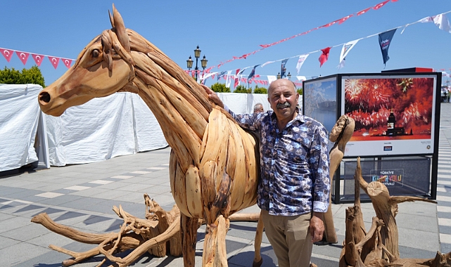 Kültür Yolu Festivali kapsamında Samsun'da faaliyet gösteren birçok usta maharetlerini Tütün İskelesi Kurtuluş Yolu üzerinde kurulan sanat sokağında sergiliyor. Festivalin ilk gününden beri oldukça yoğun bir ilgiyle karşılaşan ahşap ustası Yüksel Korkmaz (61), ağaç köklerinden yaptığı eserler ile dikkatleri üzerine çekiyor. Özellikle gerçek boyutlardan atın anatomisini dikkate alarak yaptığı ağaç at, vatandaşların dikkatini çekerken, hammaddesi ağaç olan birçok sanat eseri de insanların beğenisini topluyor.