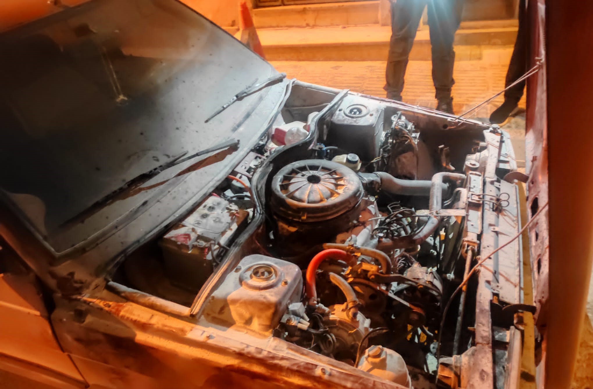 Olay, Gazi 14. Sokak'ta meydana geldi. Edinilen bilgiye göre, çarşı mahalle bekçileri devriye attıkları sırada park halindeki bir otomobilin motor kısmından alev çıktığını gördüler. Bu sırada açık olan bir işletmeden yangın söndürme tüpü alan bekçiler alevlere müdahale söndürdü.