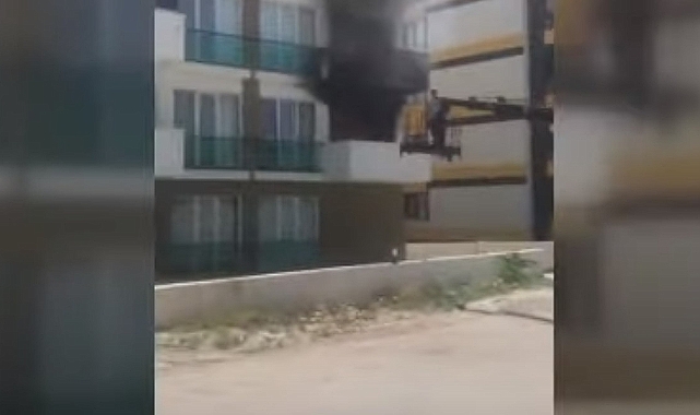 Bunun üzerine çevredekiler yoldan geçen bir vinci durdurdu. Vincin sepetine çıkan bir kişi, yangın tüpüyle alevlere müdahale ederek yangını söndürdü.