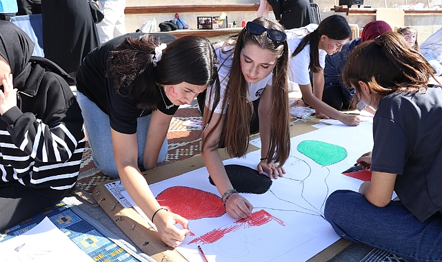 Yavuz Selim Meydanı'nda yapılan etkinliğe katılanlar İsrail'i protesto ederek, duygu ve düşüncelerini kağıtlara döktü, resimler yaptı.