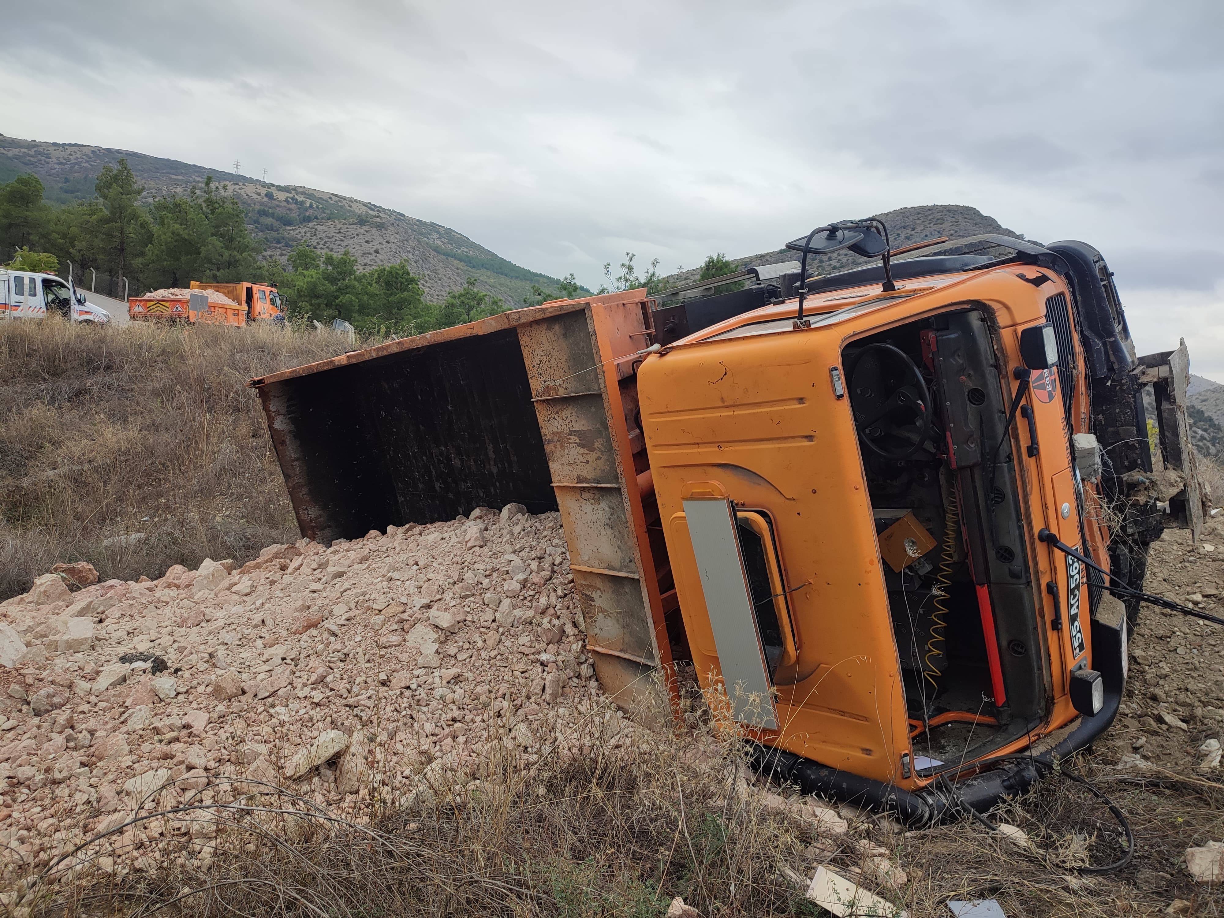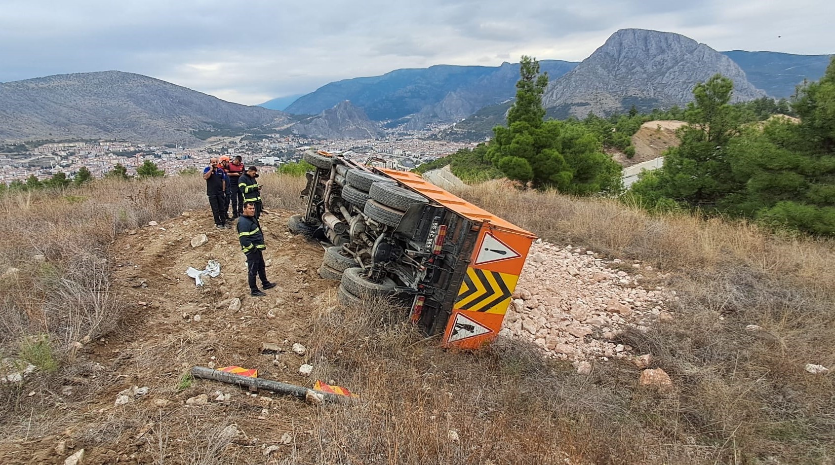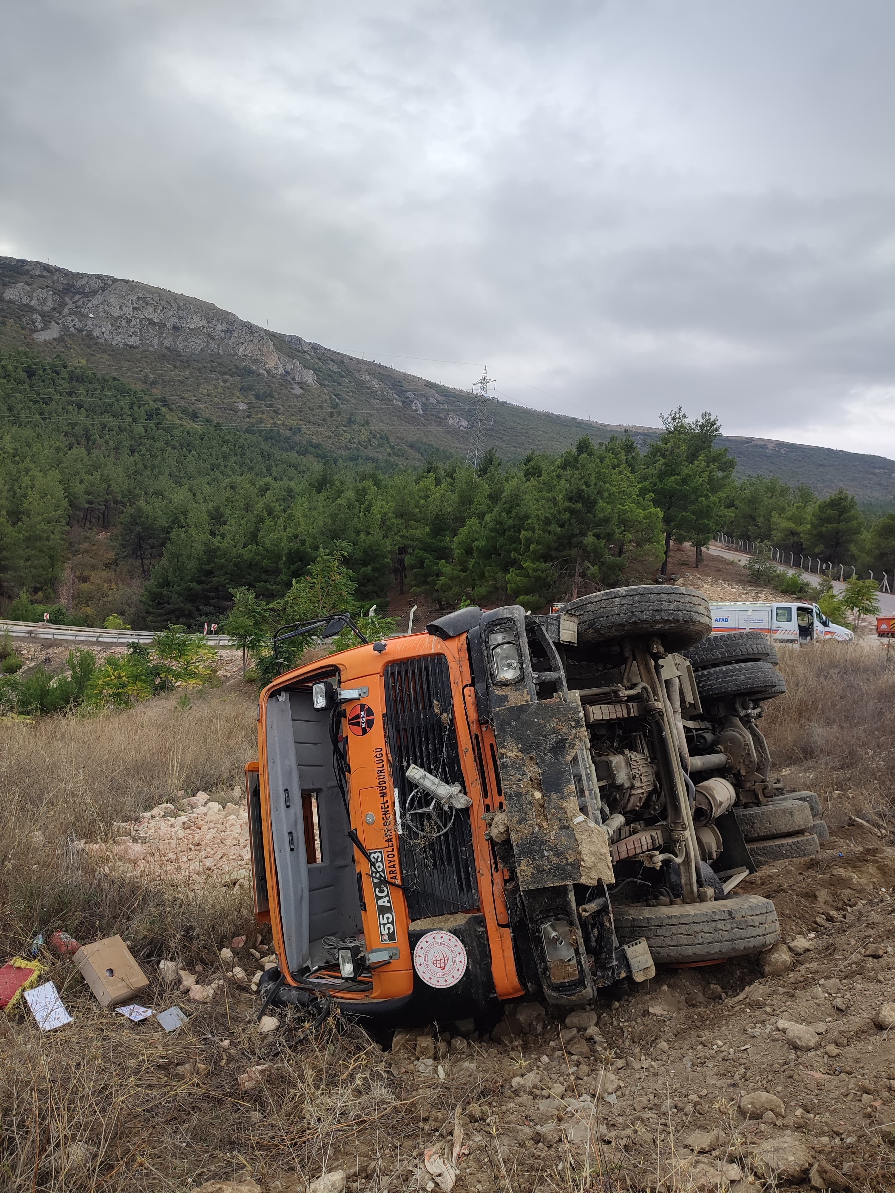 Edinilen bilgiye göre, Yağmurköy yönünden çevre yoluna doğru seyir halinde olan Selami Şahin yönetimindeki Karayolları 7. Bölge Müdürlüğü’ne ait 55 AC 563 plakalı taş yüklü kamyon yokuştan inerken freninin tutmaması üzerine kontrolden çıkarak şarampole devrildi.