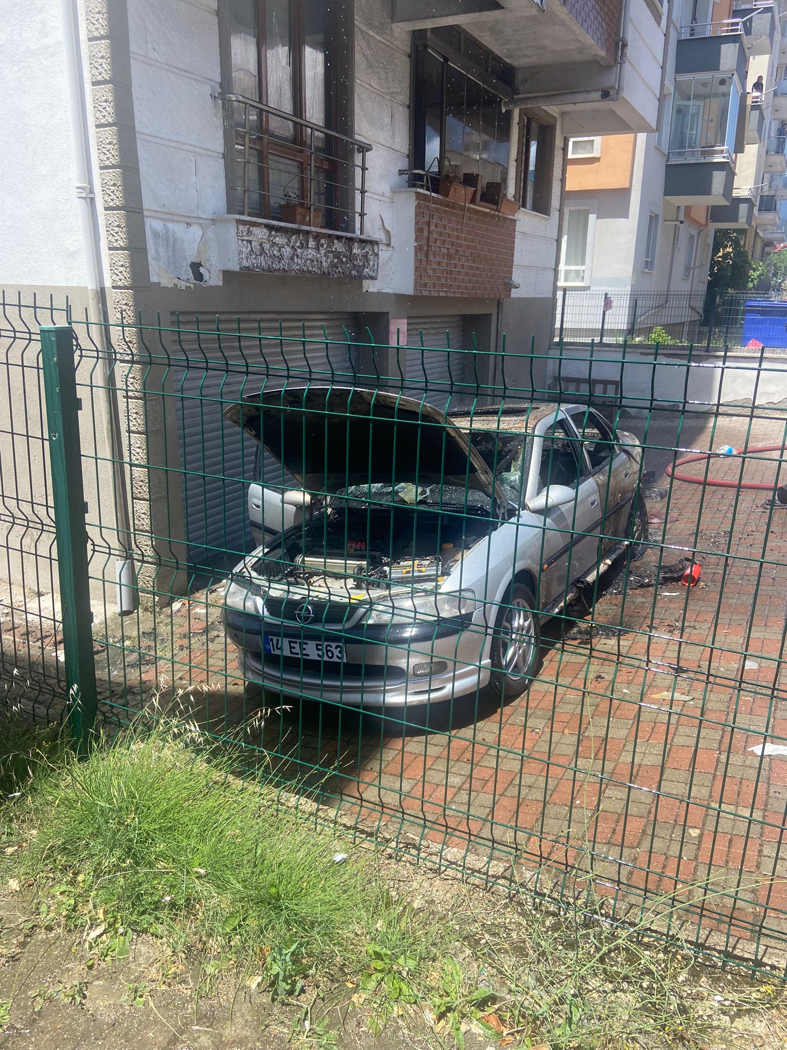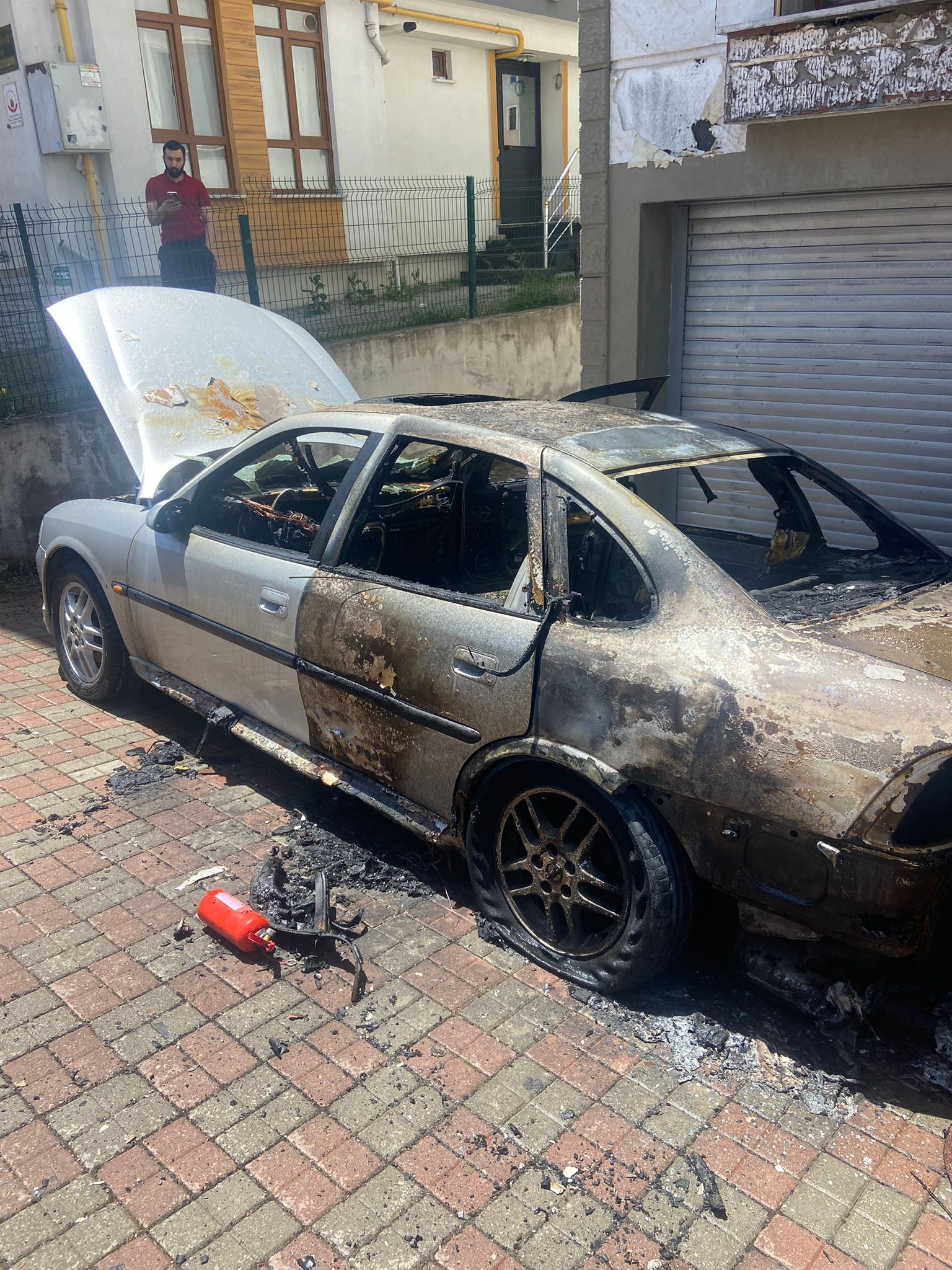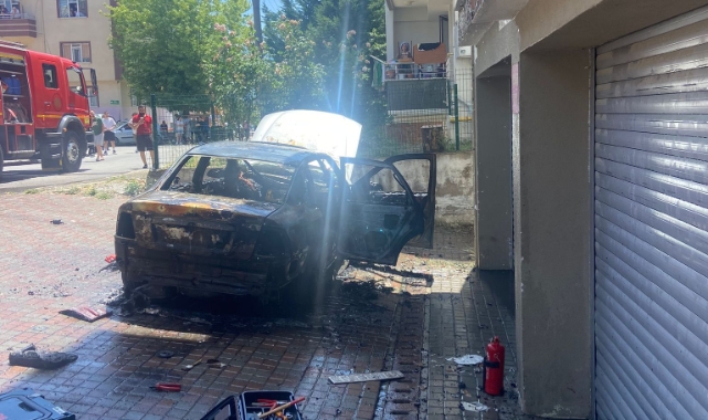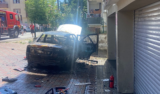 İtfaiye erlerince söndürülen yangında otomobil kullanılamaz hale geldi.