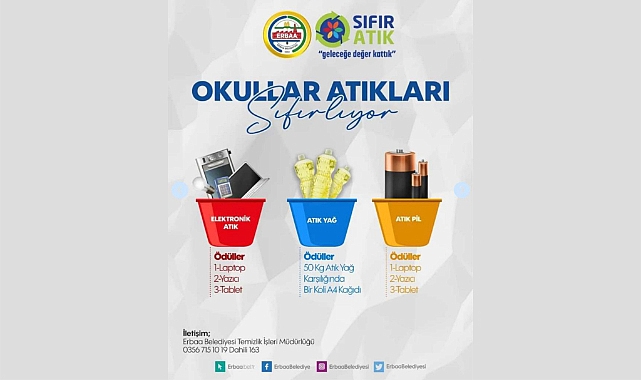 Erbaa Belediyesi “Okullar Atıkları Sıfırlıyor” sloganıyla başlattığı Geri Dönüşüm yarışına Erbaa’daki tüm okullar ve öğrencilerin katılmasını bekliyor.