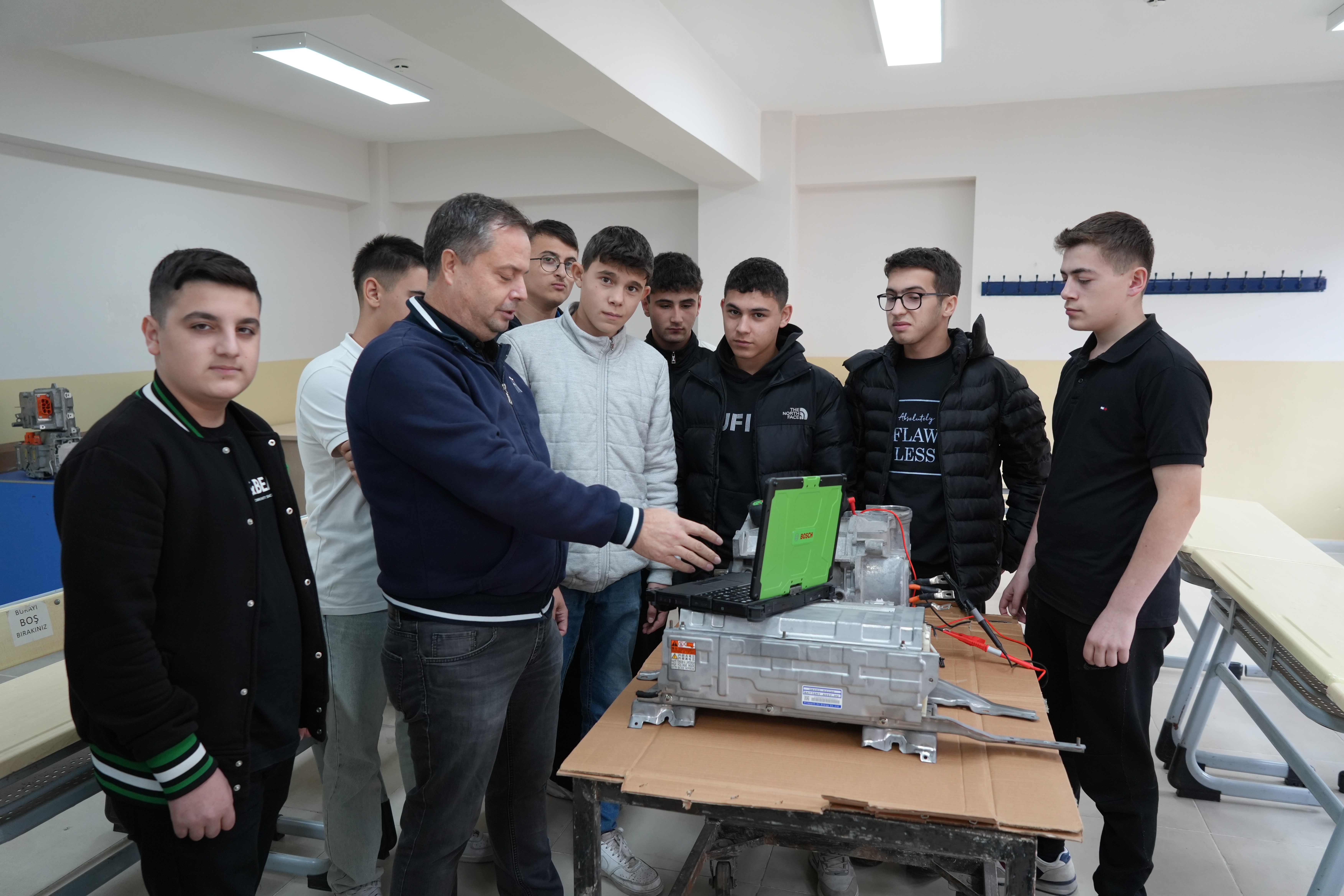 Öğrenciler ise artık petrolle çalışan araçlarının devrinin biteceğini ve geleceğin mesleği olduğu için elektrikli araç dalında okuduklarını söylediler.