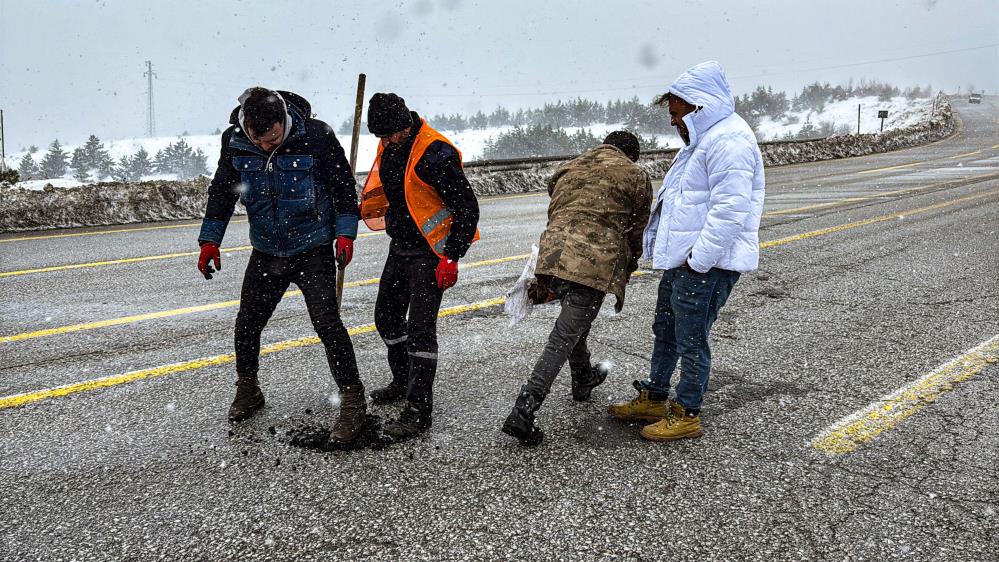 Karayolları çalışanı Osman Ceylan, mağduriyetlerin oluşmaması için her şartta çalıştıklarını söyleyip, "Karayolları devamlı çalışıyor. Tuzlama nedeniyle yollarda patlaklar oluşuyor. Onlara asfalt yaması yapıyoruz. Vatandaşlarımız mağdur kalmasın diye karda ve tipide her türlü şartlarda karayolları ekipleri çalışıyor. Görüyorsunuz tipi var ama asfalt yaması yapmaya devam ediyoruz” dedi.