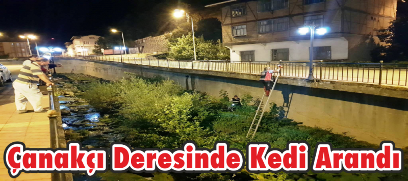 Niksar'da Çanakçı deresine düşen kedi itfaiye ekiplerinin aramalarına rağmen bulunamadı.