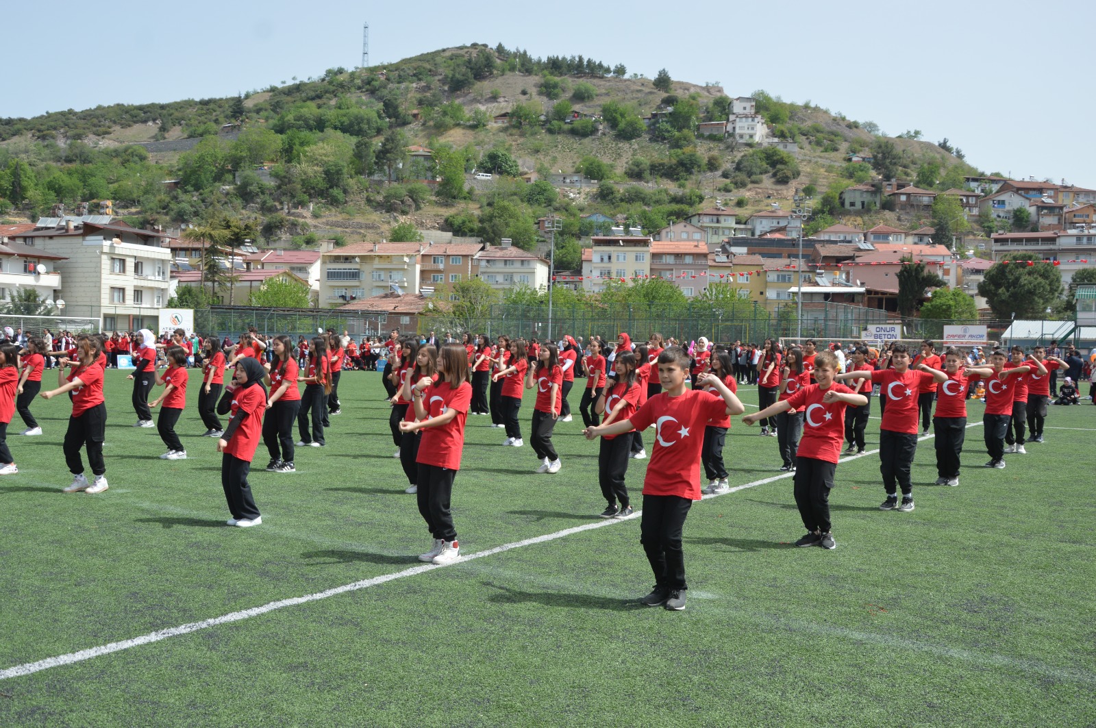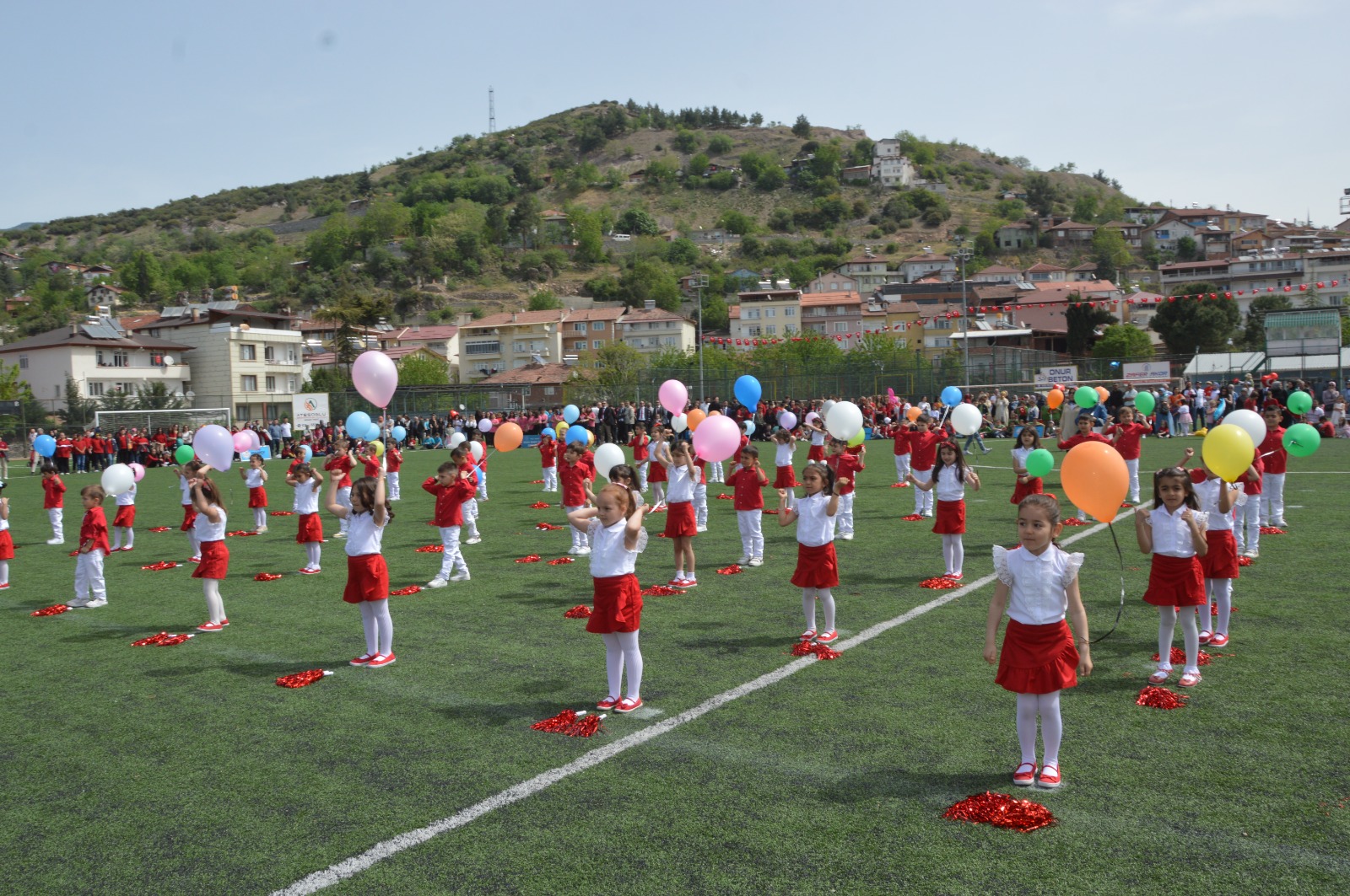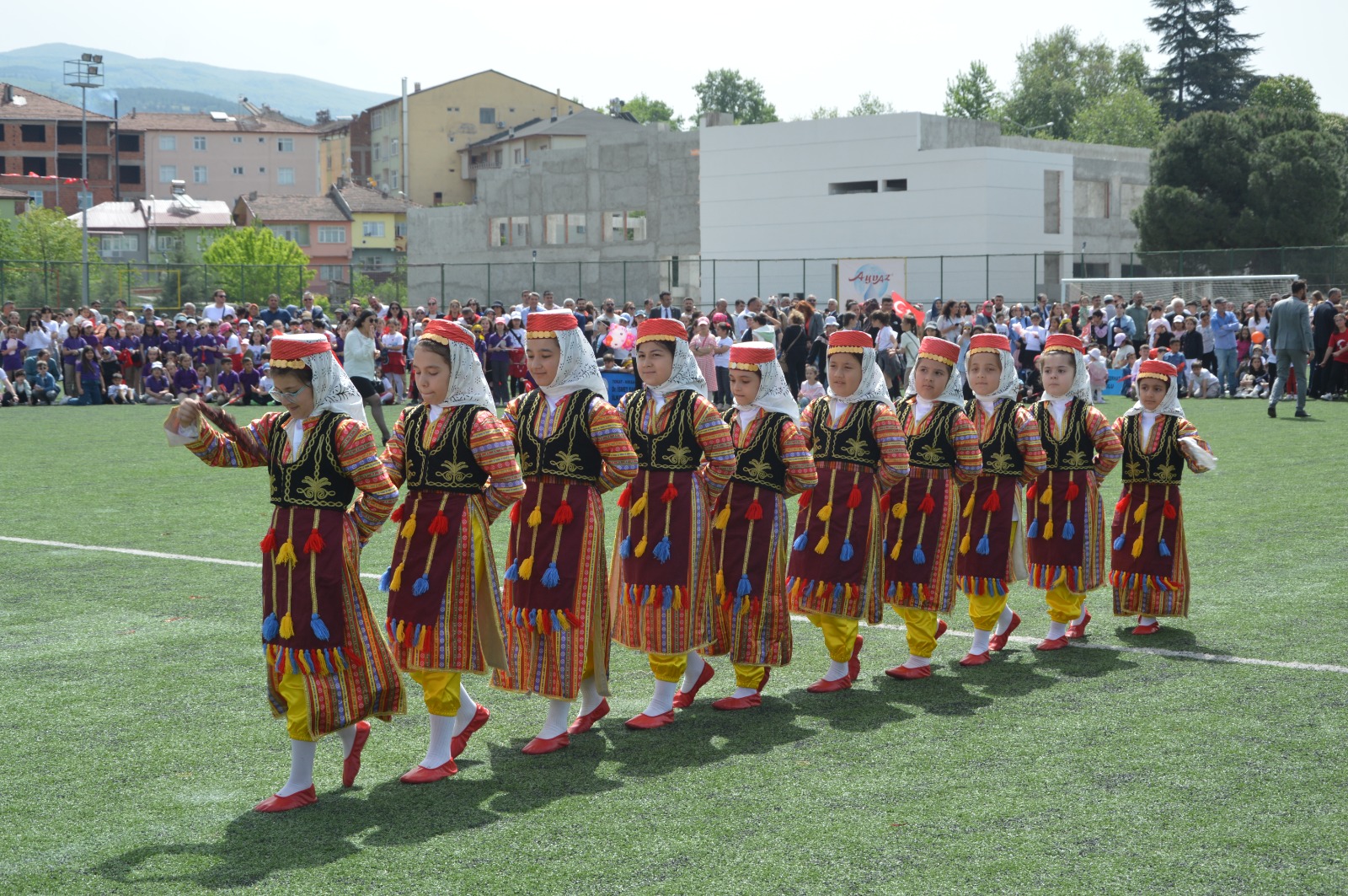 Kutlama programının gösteriler kısmında; anasınıfı öğrencilerinden, orta okul öğrencilerine kadar 23 Nisan’a özel hazırlanan; dans gösterileri gerçekleştirildi. Gösterilerde çocuklar kadar protokol, veliler ve vatandaşlar keyifli vakit geçirdiler. Program tören geçişinin ardından sona erdi.