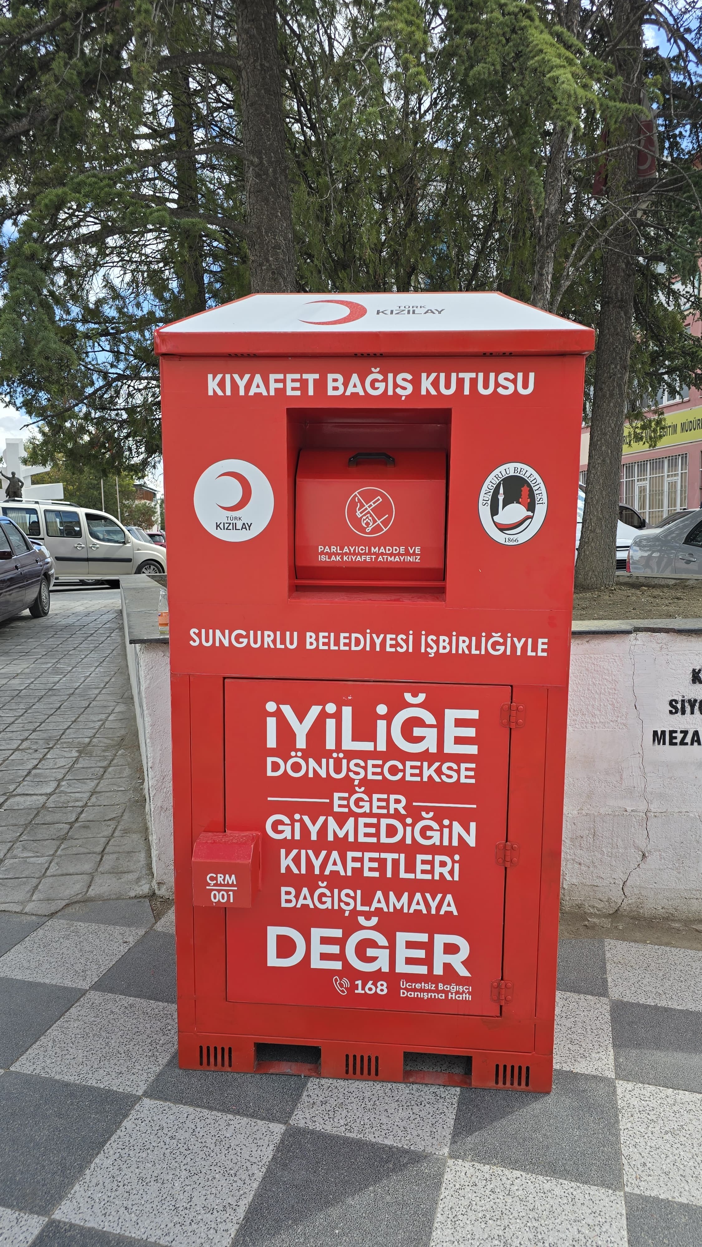 Geçtiğimiz günlerde imzalanan "Kıyafet Kumbaraları Protokolü" ile vatandaşların kullanılabilir durumdaki giysi, ayakkabı, çanta ve ev tekstil ürünlerini bağışlayarak, bu eşyaların ihtiyaç sahiplerine ulaştırılması hedefleniyor. Kumbaralara bırakılan ürünler Türk Kızılay’ı tarafından toplanarak, ihtiyaç sahiplerine ulaştırılacak.