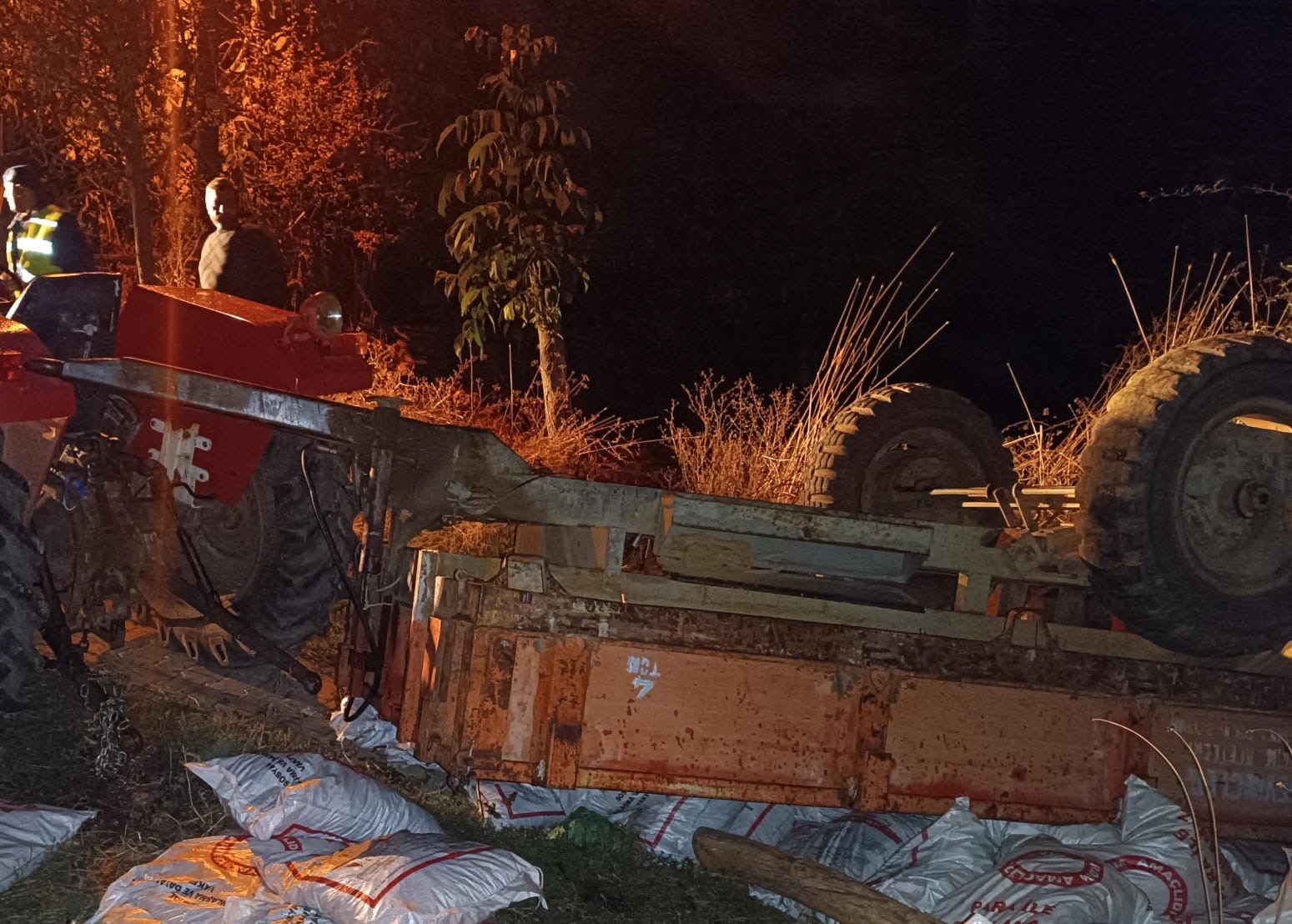 Kazada traktörün römorkunda bulunan İhsaniye K. (78) yaralandı.
