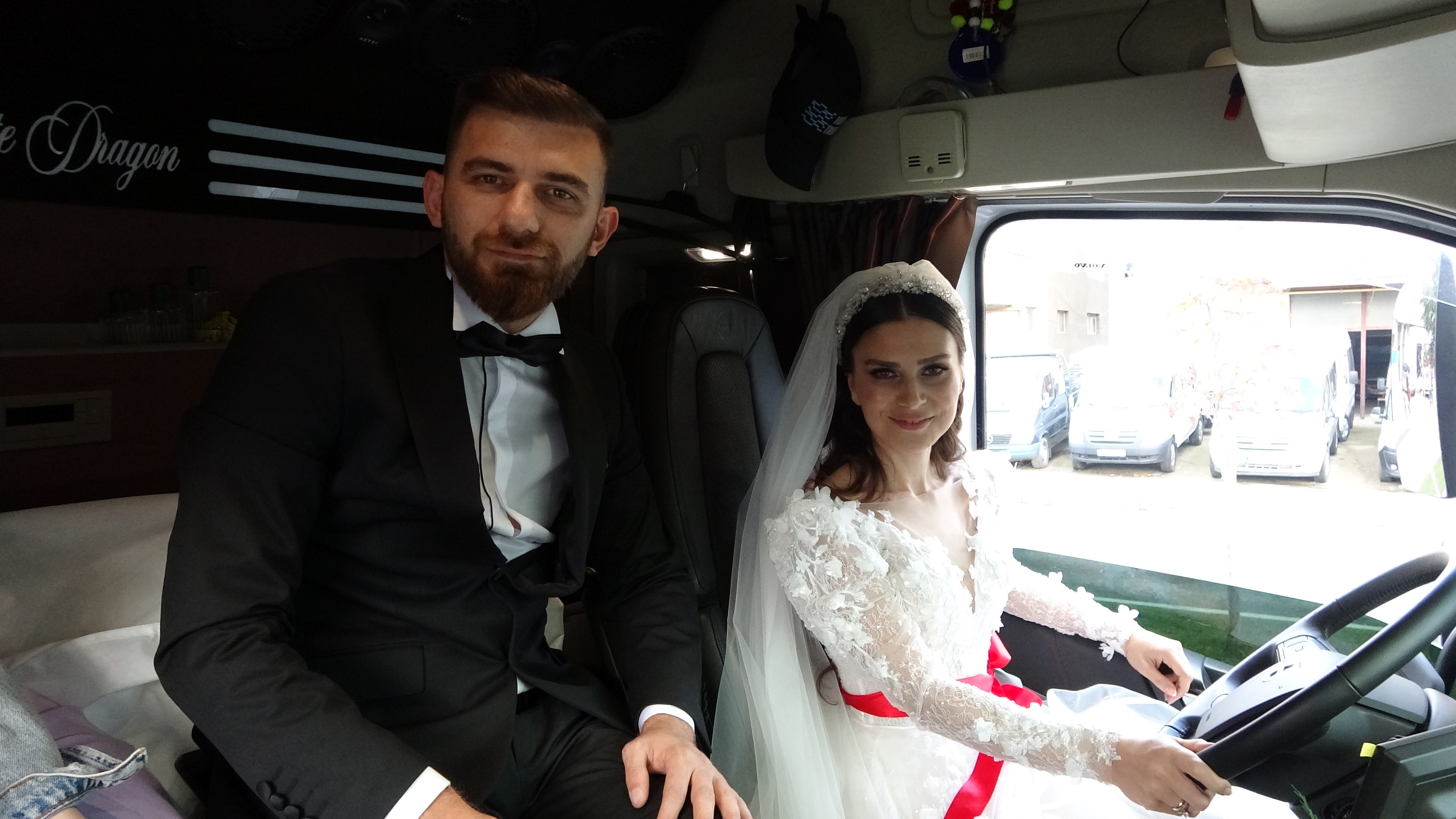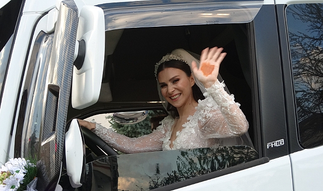 Gelinliği ile tır kullanmanın hayali olduğunu söyleyen Elif Felek ise “Tır kullanıyorum, inşallah salona kadar ben götüreceğim. Bugün en mutlun günümüz. Bu benim en büyük hayalimdi. Gelinlik ile tır kullanan daha önce hiç görmedim. Çok mutluyum ve eğlenceli” diye konuştu.