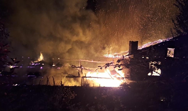 Niksar'da meydana gelen yangında altı ahır ve samanlık olan 2 katlı ahşap ev alevlere teslim oldu.