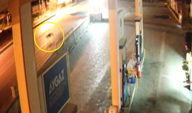 İstiklal Mahallesi'nde bir akaryakıt istasyonunun güvenlik kamerasına yansıyan görüntüde, gece saatlerinde bir kurdun ilçe merkezinden ormanlık alana doğru köpek tarafından kovalandığı görüldü.