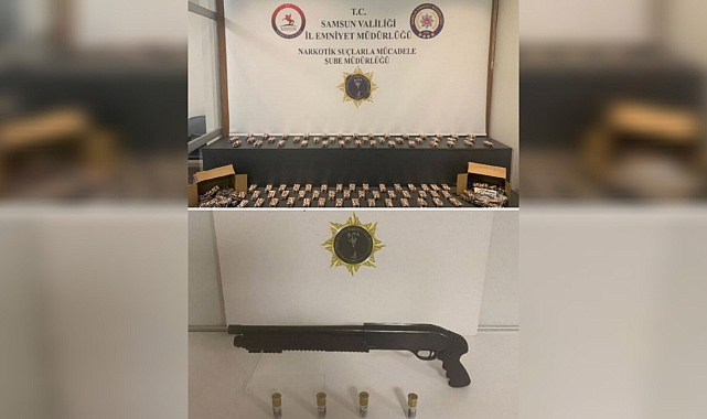 Edinilen bilgiye göre, Samsun Cumhuriyet Başsavcılığı koordinesinde uyuşturucu ile mücadele kapsamında çalışma yapan Samsun Emniyet Müdürlüğü Narkotik Suçlarla Mücadele Şube Müdürlüğü ekipleri, Canik ilçesi Yenimahalle'de S.Ç. ve E.K. isimli şahısları kargodan paket aldıktan sonra suçüstü yakaladı. Şahısların kargo paketlerinde ve ikametlerinde yapılan aramada 7 bin 840 kapsül sentetik ecza, 1 adet pompalı tüfek ve 4 adet tüfek kartuşu ele geçirildi.