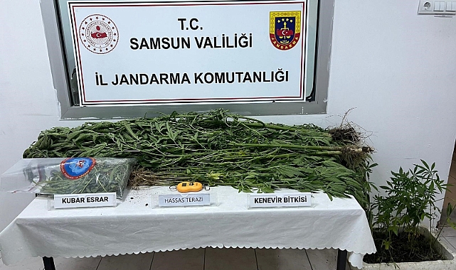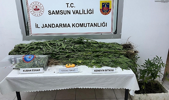 Edinilen bilgilere göre, Samsun’un Çarşamba ilçesi Yukarı Donurlu Mahallesi’nde Merkez Jandarma Karakol Komutanlığı Çarşamba JASAT ve KOM Şube ekiplerince D.G. isimli şahsın olay gününe ait görüntülerindeki kıyafetlerinin arama yapılan ve şüphelenilen ikamette ele geçirilmesi neticesinde şahsın üzerinde, eşyalarında, ikamet adresi ile CMK 140 kapsamında kenevir ekili bölgede arama yapıldı. Yapılan aramada 63 kök kenevir bitkisi, 400 gram kubar esrar(kurumaya bırakılan) ve 1 adet hassas terazi ele geçirildi. D.G. isimli şahıs gözaltına alındı, olayla ilgili soruşturma başlatıldı.