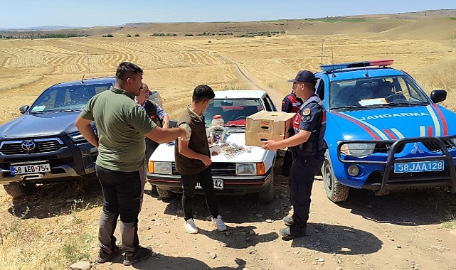 Sivas’ta izinsiz bir şekilde, usullere aykırı yöntemlerle doğan ve şahin avlayan iki kişi hakkında işlem yapılırken, kullandıkları otomobile de el konuldu.