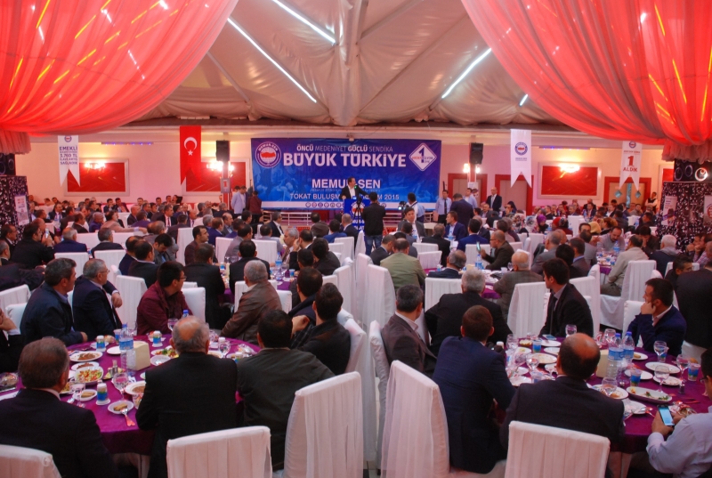 Memur- Sen Tokat Şubesi tarafından düzenlenen “Büyük Türkiye, Tokat Buluşması” sendika üyelerinin yoğun katılımı ile İşeri Petrol tesislerinde yapıldı. Programda konuşma yapan Memur-Sen Genel Başkanı Yalçın, toplu sözleşmenin herkese kazandırdığını söyledi. Sadece Memur-Sen üyelerine değil, Kamu-Sen üyeleri de, KESK üyelerinin de kazandığını ifade eden Yalçın, “Kamu görevlileri emeklileri de kazandı dediğimde 'masadan ve sahadan Kamu-Sen ve KESK'i sildik' dediğimiz de İsmail Koncuk'un 'Ali Yalçın çizmeyi aşıyorsun' diye karşılık verdiğini sizler okudunuz ve gördünüz. Ben buradan ifade ediyorum sendikacılık sınırları ve sinirleri zorlama sanatıdır. Sendikacılık hakkını bilme, hakkını alma, haddini de bilme sanatıdır. Sendikacılık çizmeyi aşma sanatıdır sayın Koncuk” diye konuştu.