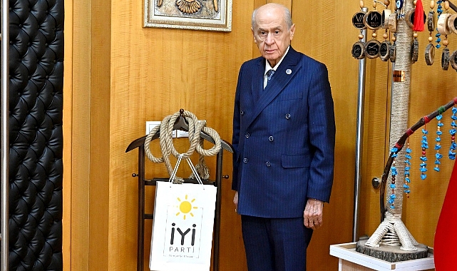 Milliyetçi Hareket Partisi(MHP) Genel Başkanı Devlet Bahçeli, İYİ Parti Genel Başkanı Müsavat Dervişoğlu'nun grup toplantısında kürsüden fırlattığı ipi odasına astı.