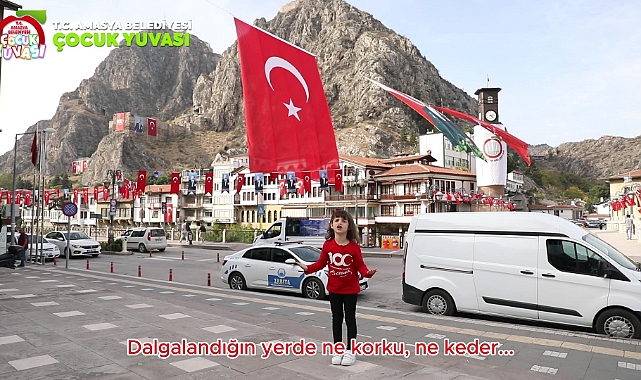 Amasya’da kız çocukları Cumhuriyet’in 100. yılı dolayısıyla kamera karşısına geçerek bayrak şiirini seslendirdi.