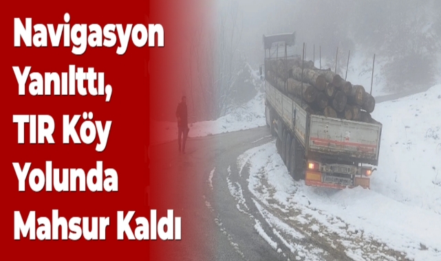 Niksar ilçesinde navigasyonun yönlendirmesiyle köy yoluna giren bir TIR, yol şartları nedeniyle mahsur kaldı.