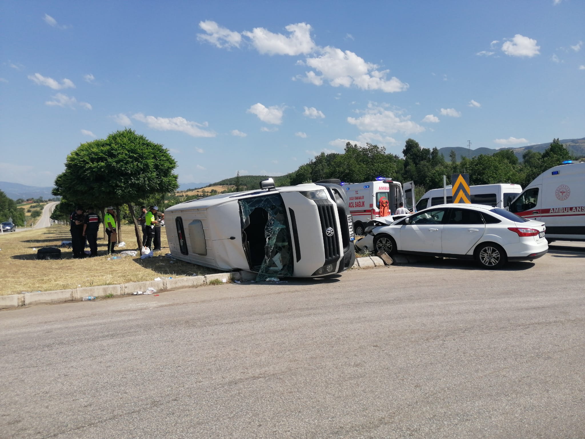 Niksar’dan geçen uluslararası D-100 Karayolu Gürçeşme Kavşağında meydana gelen kazada ilk belirlemelere göre 3'ü ağır 18 kişi yaralandı.