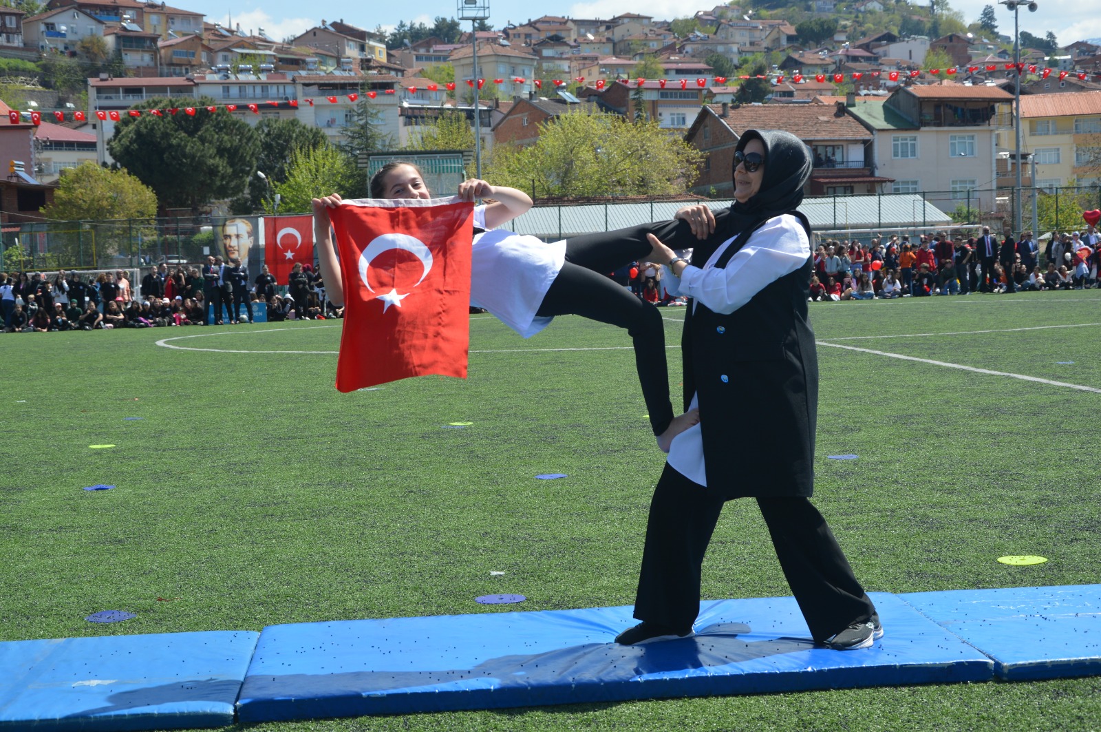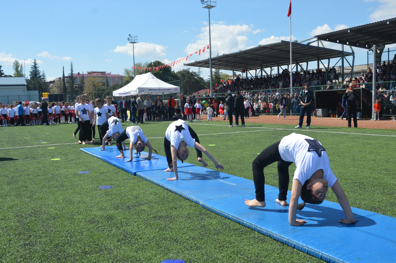 Bayramın ruhunu yansıtan devasa bayrak gösterisi, Ege’nin efelerini sahaya taşıyan Harmandalı, Karadeniz’in enerjisini yansıtan horon ve izleyenlere duygusal anlar yaşatan "Kırmızı Beyazın Dansı" isimli koreografi ile program sona erdi. Niksarlı vatandaşların yoğun ilgi gösterdiği kutlamalar, çocukların stattaki bayram turuyla noktalandı.