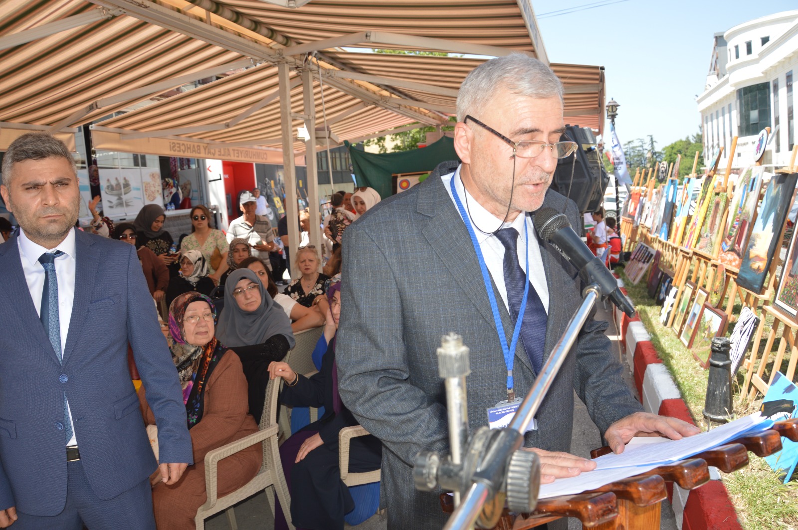 Yıl sonu sergisi açılışı töreninde konuşan Halk Eğitim Merkezi Müdürü Şakir Bolat, sergide yıl boyu kursiyerlerin öğrendiği öğrettiği el emeği göz nuru ürünlerin sergilendiğini belirterek; toplumun eğitim ve öğrenmeye olan ilgisini artırma konusundaki çalışmaların devam edeceğini ifade etti.