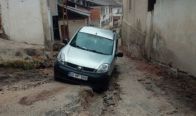 Niksar’da Belediye tarafından altyapı çalışması yapılan Melikgazi Mahallesi Halilefendi Camii yanındaki yol yağan sağanak yağmur nedeniyle çöktü.