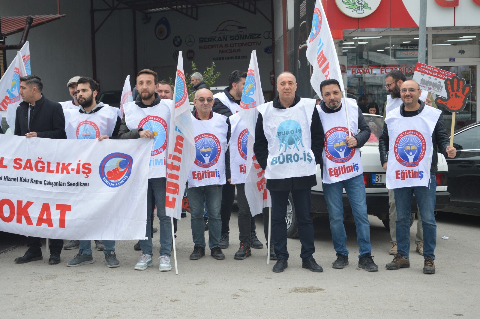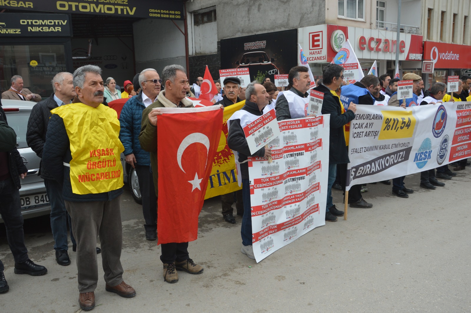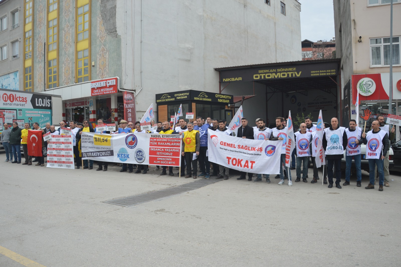 Birleşik Kamu-İş Konfederasyonu, KESK, BASK, HÜR-SEN ve Birleşik Kamu İş Konfederasyonu, Niksar Temsilcileri Memur maaşlarına yapılacak olan zamma tepki göstererek iş bıraktı.