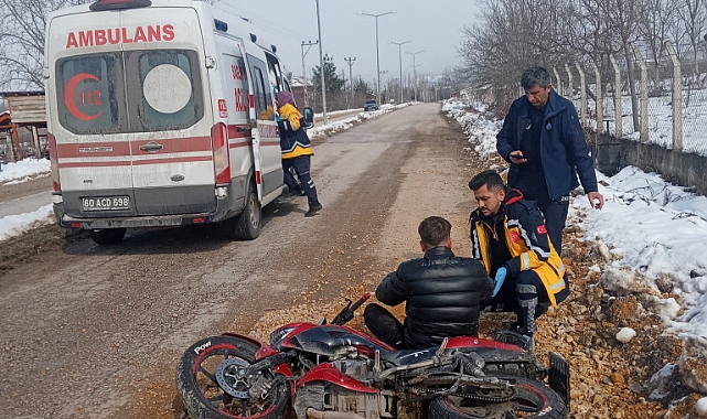 Niksar'da 50. Yıl Mahallesi, Yüksekokul yolu üzerinde meydana gelen trafik kazasında, direksiyon hakimiyetini kaybeden motosiklet sürücüsü yaralandı.