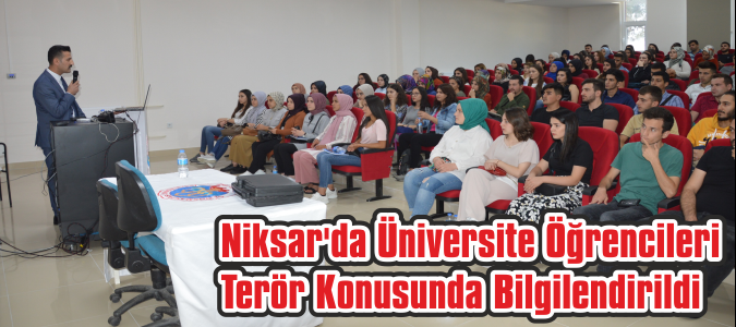 Niksar İlçe Emniyet Müdürlüğü TEM Büro Amirliği ekipleri tarafından yüksekokul öğrencilerine yönelik “Uyum Haftası” etkinlikleri kapsamında 'Gençlik ve Güvenli Gelecek' konulu seminer verildi. Niksar İlçe Emniyet Müdürlüğü Terörle Mücadele Büro Amiri Komiser Yardımcısı Ömer Özerdemir tarafından verilen seminerde öğrenciler, terör örgütlerinin zararlı propaganda çalışmaları hakkında bilgilendirilerek, Türkiye aleyhinde yürütülebilecek zararlı oluşumlara karşı ortak mücadele bilincinin nasıl geliştirilebileceği, terör örgütlerinin yaptığı propaganda yöntemleri konularına değindiler.