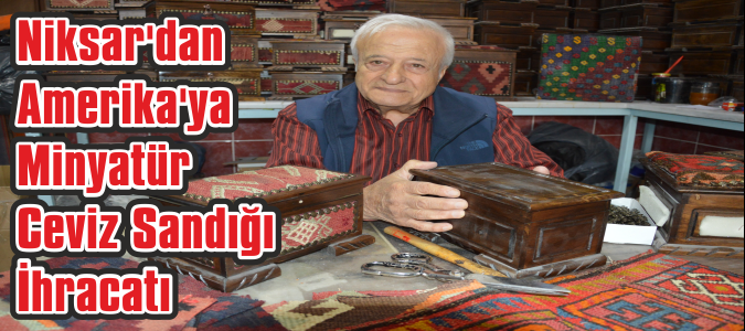 Niksar'da 30 yıldır minyatür ceviz sandıkları üreten Atalay Atila, sandıkları Amerika Birleşik Devletlerine (ABD) ihraç ediyor.