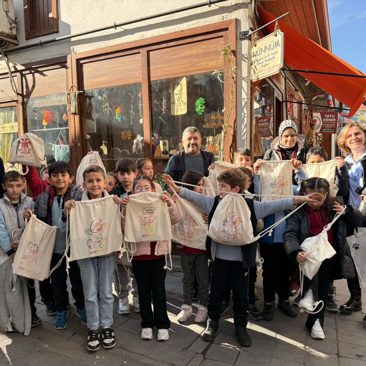 Ziyaret sırasında öğrenciler, kendi seçtikleri ahşap kalıplar ile baskı çalışması yaparak sırt çantalarını renkli desenlerle süsledi. Geleneksel el sanatlarıyla tanışan minik öğrenciler hem keyifli anlar yaşadı hem de üretmenin mutluluğunu tattı.
