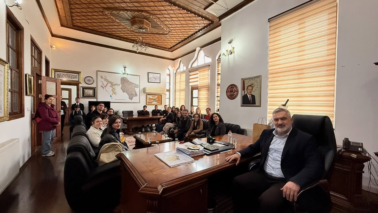 Sunumun ardından heyet, Niksar Belediye Başkanı Semih Tepebaşı’nı makamında ziyaret etti. Başkan Tepebaşı, Niksar’ın tarihi kimliğini koruyarak sürdürülebilir gelişim hedefi doğrultusunda yürütülen projeler hakkında bilgi paylaştı. Öğrenciler de yerinde gözlem ve veri toplama sürecinde belediye ile iş birliği içinde çalışacaklarını belirtti.