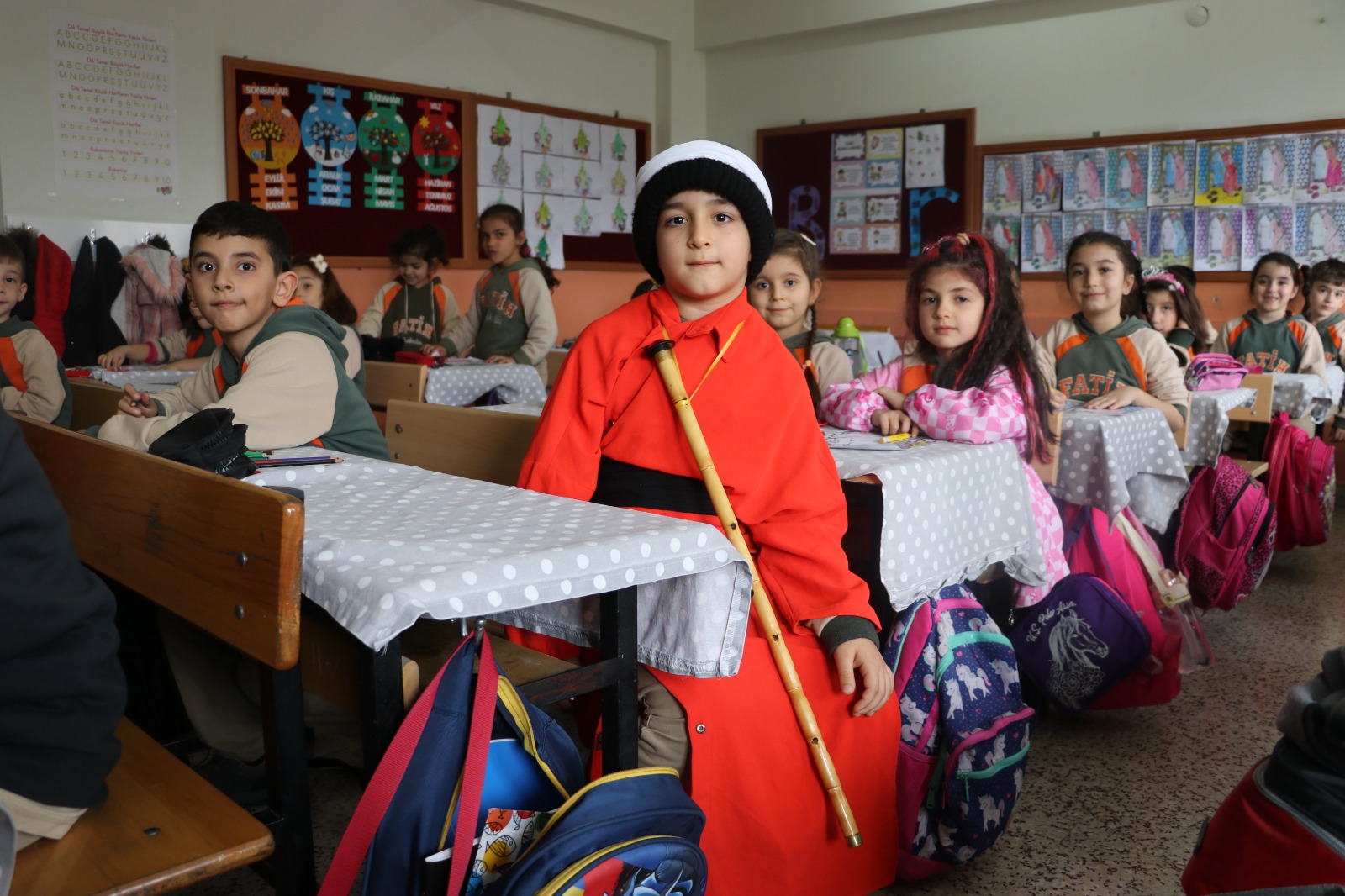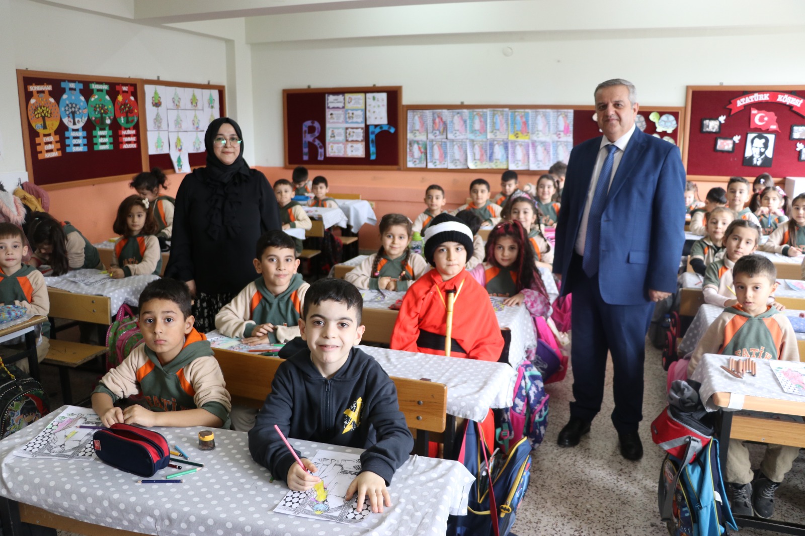 Fatih İlkokulu 1/C sınıfı öğretmeni Zeynep Bağcı, serbest etkinlikler ve görsel sanatlar dersinde, dersleri görsellik üzerine işliyor.