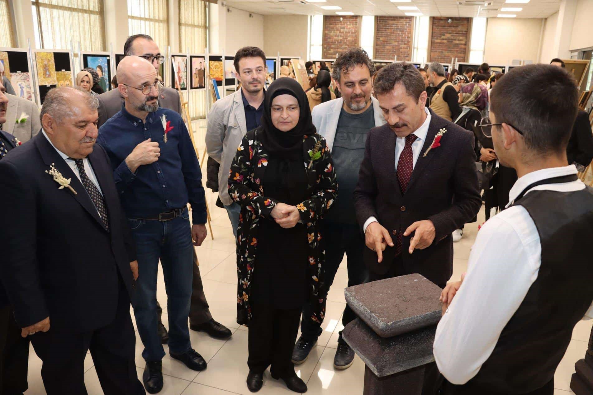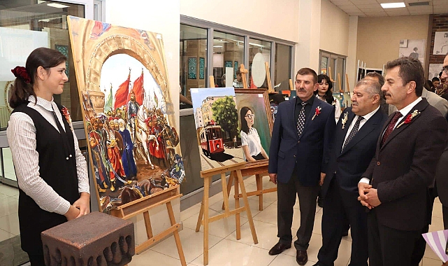 Açılış öncesinde sergi hakkında bilgi veren Okul Müdürü Harun Kaya, sergide öğrencilerin özgün çalışmalarından oluşan 100 ayrı eser bulunduğunu belirtti. Daha sonra öğretmen ve öğrencilerle birlikte açılış kurdelesini kesen Karaca ve Aslan, sergiyi gezerek öğrencilerin çalışmaları hakkında bilgi aldı.