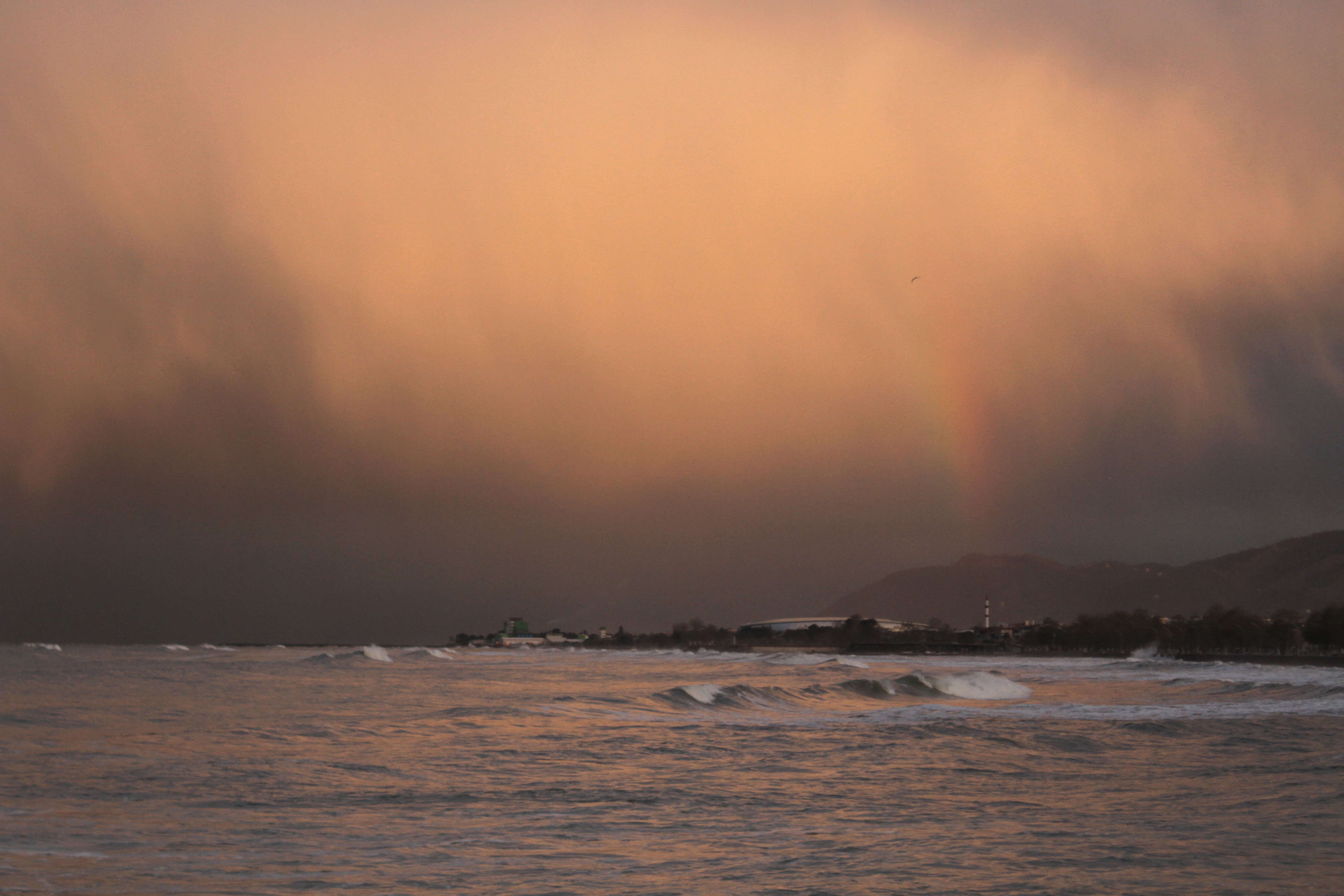 Akşam saatlerinde Deniz üzerinde beliren Gökkuşağı ve bulutlar, günbatımı ile birleşince ortaya adeta görsel bir şölen çıktı. Ordu’nun deniz ve şehir manzarası ile bütünleşen ve yaklaşık 5 dakika süren renk şölenini yakalamak isteyen vatandaşlar manzarada fotoğraf çekindi. Vatandaşlar böyle görüntülere çok sık rastlanmadığını söylediler.
