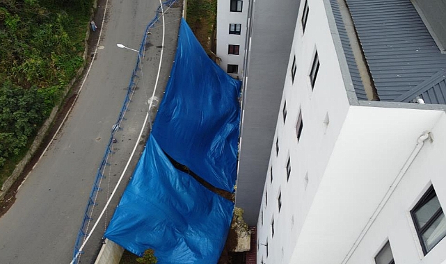 Ordu'nun Ünye ilçesinde etkili olan sağanak yağışlar nedeniyle istinat duvarı çöken ve boşaltılan 48 daireli binanın olduğu alanda çalışmalar devam ediyor.