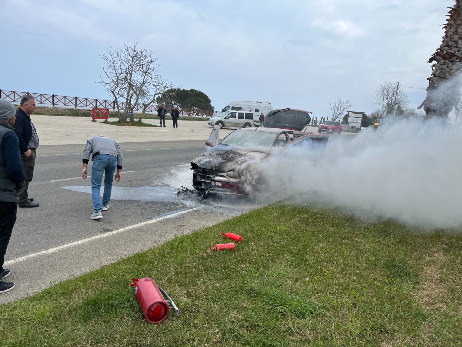 Yangın, Gölevi Mahallesi Devlet Sahil Yolu Caddesi üzerinde meydana geldi. Ufuk Kılıçkayaidaresindeki 52 AEU 359 plakalı otomobilin Ünye şehir merkezi istikametine seyir halinde ilerlediği sırada, motor bölümünden dumanlar yükselmeye başladı. Dumanları gören sürücü Ufuk Kılıçkaya hemen araçtan inerek yangına müdahale etmeye çalıştı. Çevredekilerin haber vermesi üzerine bölgeye çok sayıda itfaiye ekipleri sevk edildi. Vatandaşlar yangın tüpleriyle otomobilin ön kısmındaki yangına müdahale etmeye çalışırken, Ordu Büyükşehir Belediyesi Ünye İtfaiye Grup Amirliği ekipleri motor bölümünü alevlerin sardığı otomobile müdahalede bulundu.