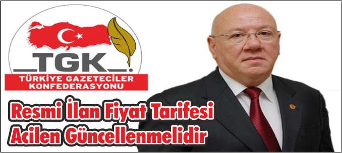 Türkiye Gazeteciler Konfederasyonu Genel Başkanı Nuri Kolaylı, medya sektörünün büyük bir darboğazdan geçtiğini belirterek, Resmi İlan Fiyat Tarifesi'nin vakit geçirilmeden güncellenmesini istedi.