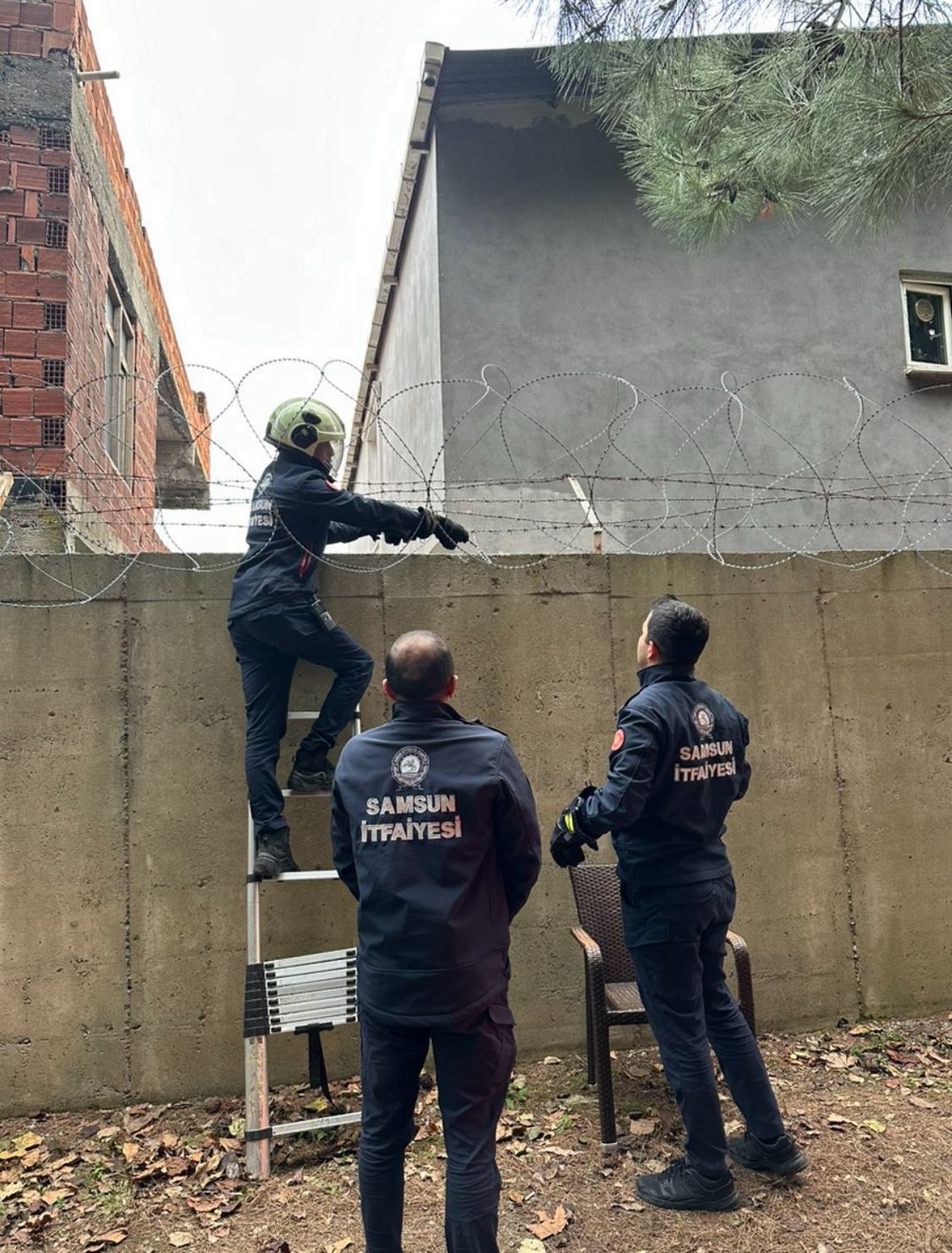 Sahra Sıhhiye Okulu ve Eğitim Merkezi Komutanlığı duvarı üzerindeki dikenli tellerin olduğu alanda bir kedinin uzun süredir hareket etmediğini fark eden askeri personel durumu itfaiyeye bildirdi.