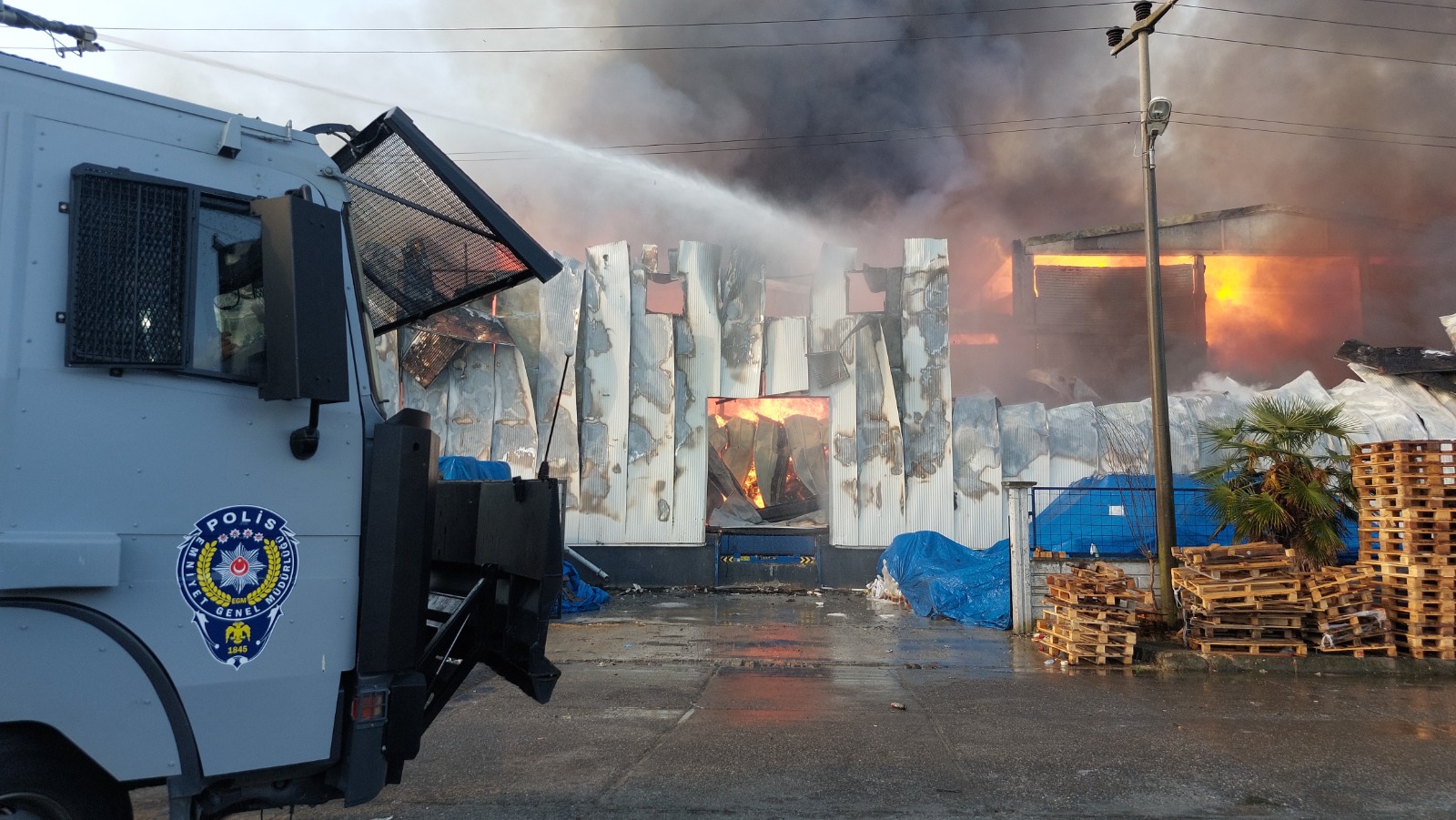 Yangın söndürme çalışması devam ediyor.