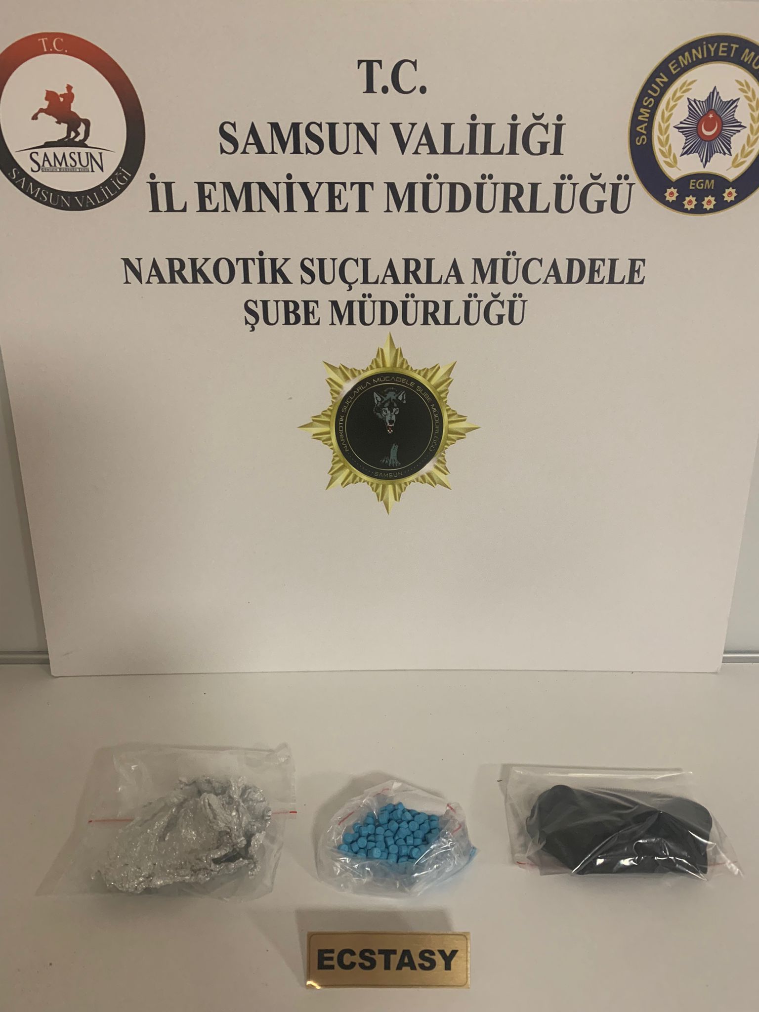 Çalışmalar neticesinde, 102,24 gram sentetik uyuşturucu, 321 sentetik ecza, 274,2 gram esrar, 6 kök kenevir bitkisi, 2 uyuşturucu kullanım aparatı, 1 ruhsatsız tüfek, 20 tüfek kartuşu ve 110 kaçak elektronik sigara ele geçirildi.