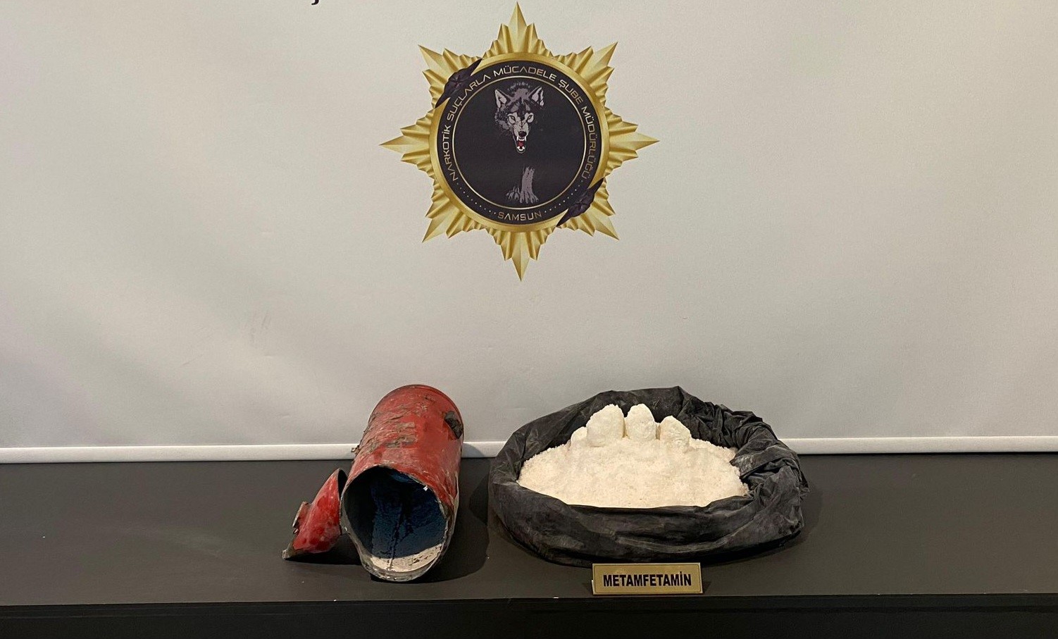 Edinilen bilgiye göre, Samsun Emniyet Müdürlüğü ekipleri, uyuşturucu ticareti yapan şahıslara yönelik yürüttükleri çalışma kapsamında Havza ilçesinde şüpheli bir tırı takibe aldı. Araçta yapılan detaylı aramada yangın tüpüne sonradan müdahale edildiğinden şüphelenen polis, tüpün içine zulalanmış şekilde 4 kilogram 720 gram metamfetamin ele geçirdi.