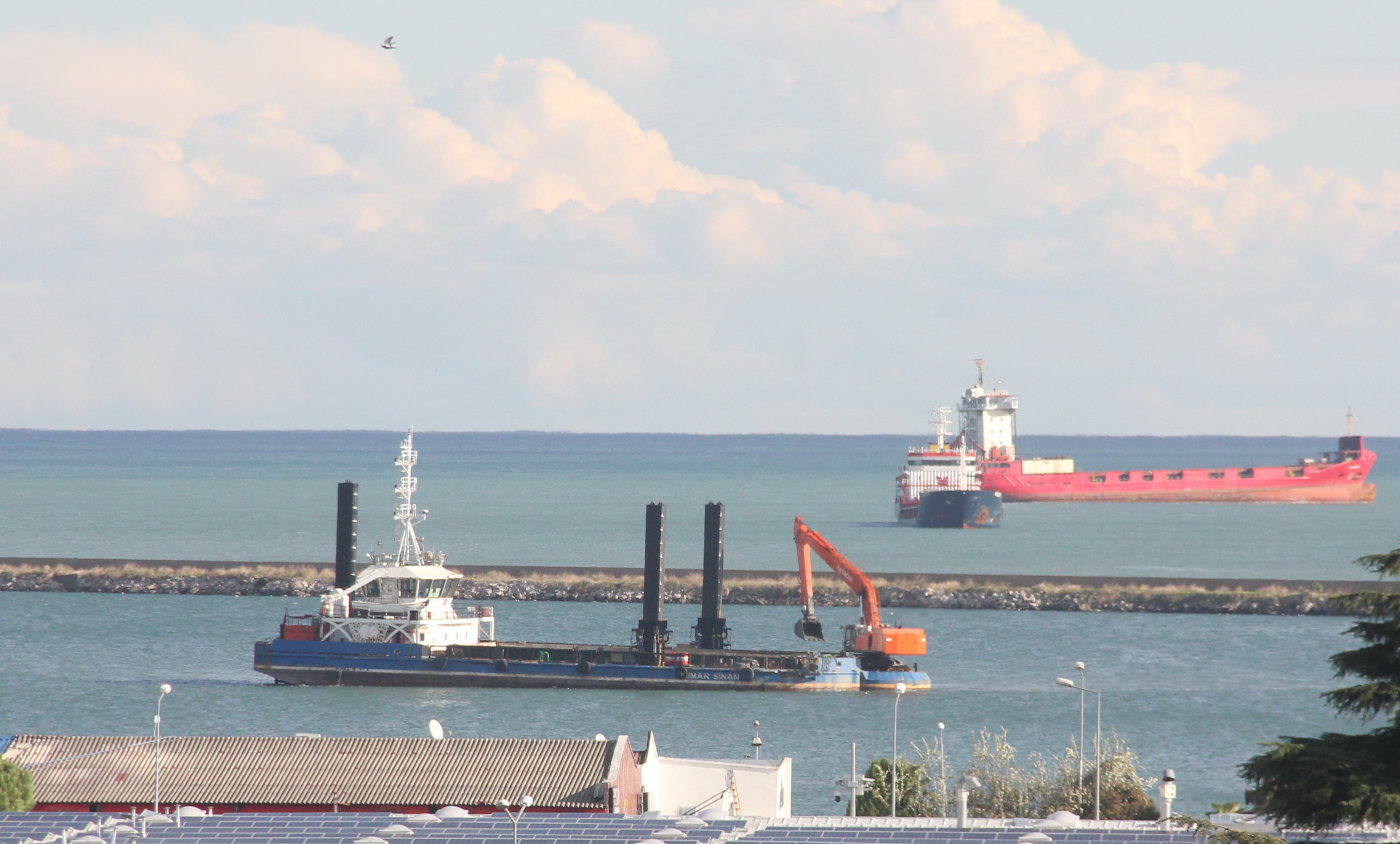 Doğu mendireği tarafında başlanan çalışmayla denizin dibinden alınan malzeme, gemiye yükleniyor ve daha sonra açığa bırakılıyor. Derinleştirme çalışması kapsamında limandan 50 bin metreküp malzeme çıkartılacağı öğrenildi.