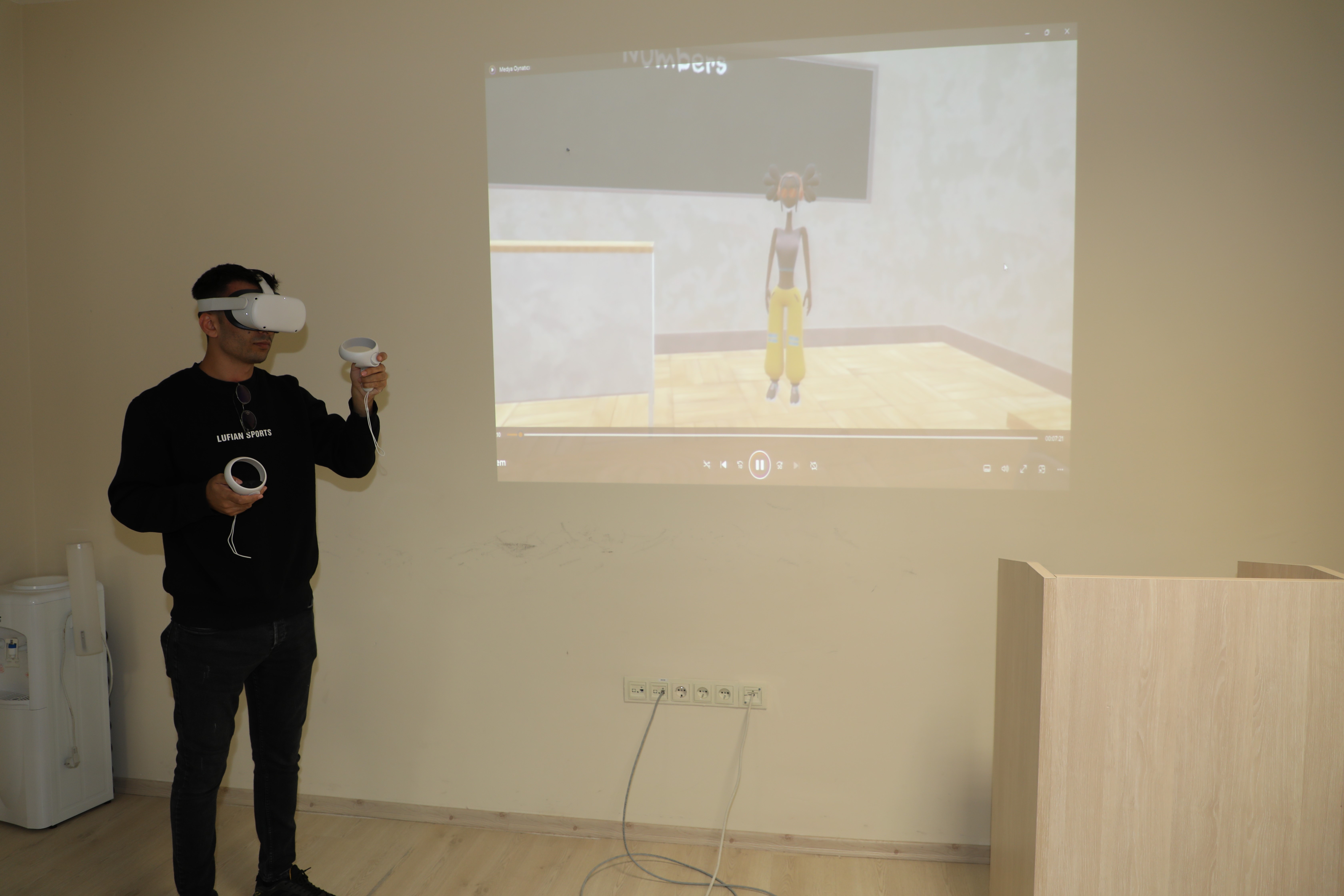 Yozgat Bozok Üniversitesi Mühendislik Mimarlık Fakültesi Bilgisayar Mühendisliği Bölümü Dr. Öğr. Üyesi Gökalp Çınarer danışmanlığında, Yapay Zeka Kulübü öğrencilerinden Kerem Can Kurt ve proje ekibi tarafından VR Tabanlı Yapay Zeka Destekli İngilizce Eğitim Platformu geliştirildi. Proje çerçevesinde geliştirilen uygulamada yazılım teknolojilerinden, sanal gerçeklik platformlarına ve yapay zeka kütüphanelerinden istifade edildi. Bu çalışma doğrultusunda, Unity3D oyun motoru ve Oculus Quest 2 sanal gerçeklik gözlüğü kullanılarak Milli Eğitim Bakanlığı ilkokul 2. sınıf öğrencilerinin İngilizce dersinde kullanıma yönelik görsel, sesli ve etkileşimli uygulamalar geliştirilerek sanal gerçeklik teknolojisinin İngilizce öğretimine entegre edilmesi hedeflendi.